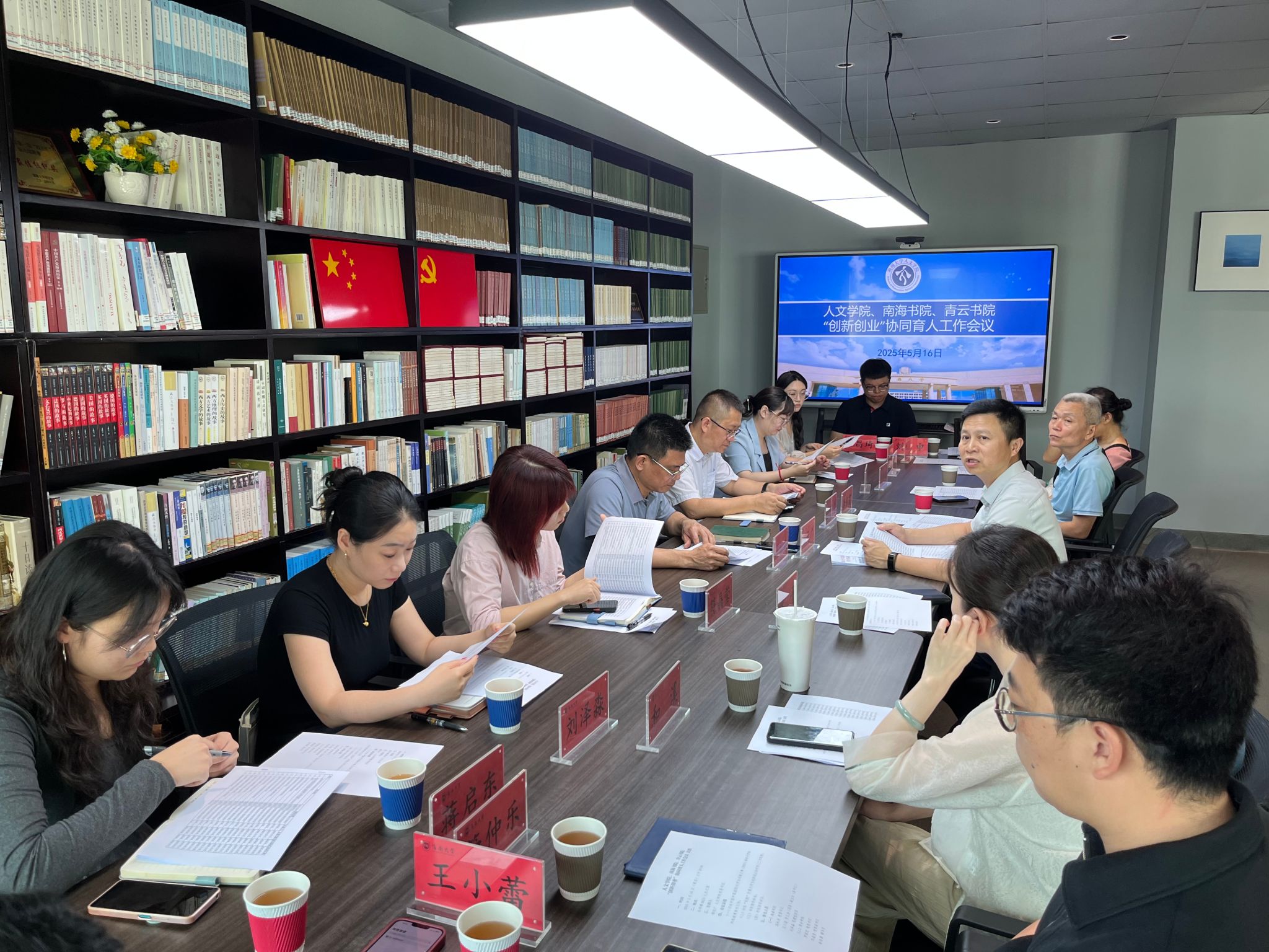 5月16日上午,hy3380cc海洋之神联合南海书院、青云书院在社科楼B621人文之家召开“创新创业”协同育人工作会议。公司党委书记杨元广、南海书公司党委书记冯社洪、青云书公司党委书记罗国忠、国社科重大项目首席专家和溪教授等出席会议。