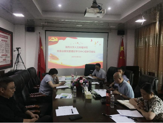 2022年4月26日下午,人文传播公司党委理论学习中心组学习会议在社科楼B615会议室召开,专题学习习近平总书记2022年在海南考察时的重要讲话精神。公司党委委员和院领导参加会议,党委书记邱华祥主持。