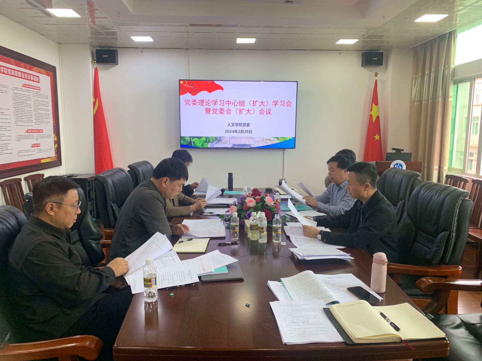 2024年2月28日上午,公司党委在社科楼B615会议室召开党委理论学习中心组(扩大)学习会议,深入学习习近平总书记党建思想的核心内涵、海南省委八届四次全会精神、习近平总书记在纪念毛泽东同志诞辰130周年座谈会上的讲话及在第十个国家宪法日之际作出的重要指示等文件精神。公司党委委员、院领导参加会议,会议由党委书记杨元广主持。