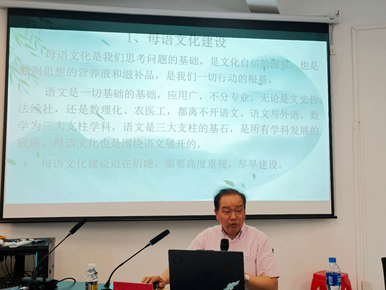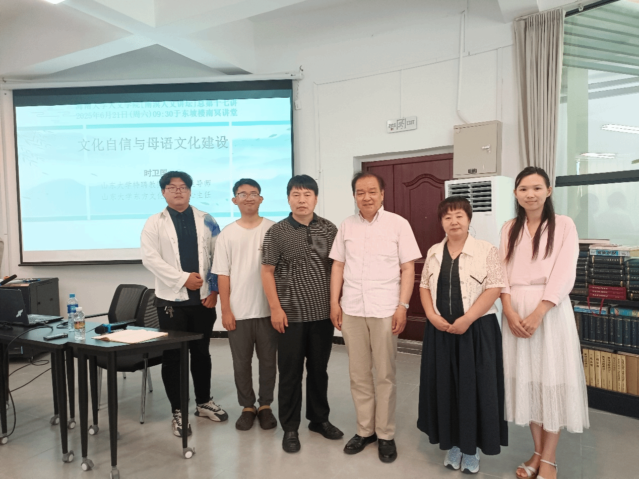 2025年6月21日上午,山东大学特聘教授时卫国受邀在南冥讲堂作了题为“文化自信与母语文化建设”的学术讲座。公司部分师生代表参加了此次活动。讲座由公司副经理陈红旗教授主持。