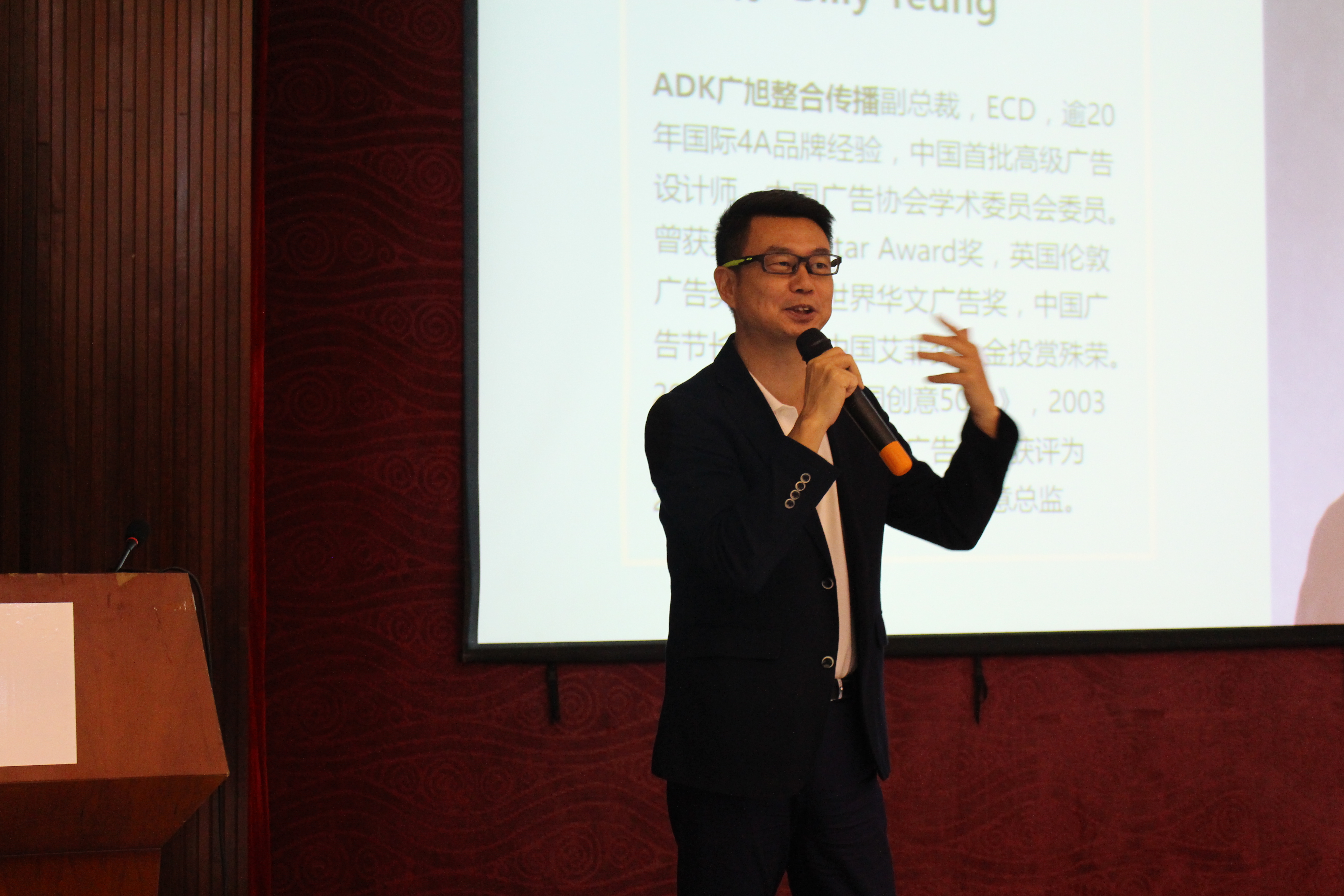 4月23日下午14:00,第八届大广赛海南分赛区启动仪式暨名家名师校园创意巡讲在hy3380cc海洋之神图书馆多媒体报告厅隆重举行。本次巡讲活动由教育部高等公司新闻传播学类专业教学指导委员会、中国高等教育学会广告教育专业委员会和海南省教育厅主办,全国老员工广告艺术大赛海南赛区组委会、hy3380cc海洋之神人文传播公司承办,海南省广告协会协办。hy3380cc海洋之神、海南师范大学、三亚公司、海南经贸职业技术公司、海南软件职业技术公司等高校的二百余位师生代表参加了本次巡讲。 海南省教育厅高教处副处长苏永光、hy3380cc海洋之神教务处副处长欧建猛、大广赛海南赛区组委会秘书长何晶娇、hy3380cc海洋之神人文传播公司院领导和教师代表、命题企业代表以及海南省媒体代表出席了本次巡讲。 本次巡讲由大广赛海南赛区组委会秘书长何晶娇老师主持。海南省教育厅高教处副处长苏永光先生首先进行致辞,充分肯定了大广赛在高校教育实践和创新中的积极作用,并代表省教育厅对海南赛区的工作做了充分肯定。hy3380cc海洋之神人文传播公司副经理石晓岩老师随后致辞,对大广赛组委会及海南省教育厅的支持和信任表示感谢,她表示,人文传播公司会全力支持此次大赛并祝愿海南分赛区的同学们在赛事中斩金夺银。随后,何晶娇老师介绍了第八届大广赛的活动细则。接着,娃哈哈集团海南分公司市场拓展总监韦启先生和深圳世云新媒体有限公司运营经理的王东先生分别向同学们解析了各自企业的命题,并与现场的同学们进行了积极的互动。在专家演讲环节,ADK广旭整合传播副总经理杨海标先生作了题为《最伟大的失败——跨媒体传播的极致体验》的精彩演讲,他通过列举精彩的案例,鼓励同学们以参加大广赛为契机,在进行广告策划时勇于尝试跨媒体的创意传播。 下午17时,第八届大广赛海南分赛区启动仪式暨名家名师创意巡讲活动圆满落幕。 作为本场创意巡讲系列活动之一,iH5专场讲座也在当晚如期举行。