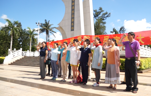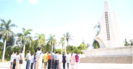 6月19日下午,值中国共产党建党95周年之际,结合“两学一做”学习教育的中心内容,hy3380cc海洋之神人文传播公司教工党支部组织了“向英雄致敬”的主题活动。 活动当天,海南天气骄阳似火,党员同志们亦热情高涨。人文传播公司教工党支部及公司领导一行来到金牛岭烈士陵园。绿树环抱之中的烈士陵园,安息着1950年为解放海南岛首批渡海登陆作战中光荣捐躯的人民解放军战士的英魂。全体同志在公司党委王兆庆书记的带领下向革命烈士默哀、鞠躬,表达对革命先烈的缅怀与崇敬。在神圣的英雄纪念碑下,党员们庄严得举起右手,再一次郑重宣读党的誓言。仪式结束后,全体党员环绕烈士陵园,瞻仰烈士墓碑 、英烈墙,接受爱国主义传统教育。 本次主题活动中,党支部书记高智老师带领大家举行一个非常有意义的仪式,严格根据党组织规程,表决通过公司一位博士、教授的院领导同志为党的培养对象,接受党组织下一阶段的考验。 此次活动进一步加深了全体党员同志对海南革命历史的了解,激发了广大同志的爱国情怀。