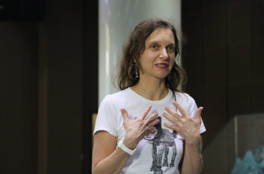 此外,娜塔莎?戴维斯女士与同学们进行了形式丰富,内容多样的互动。她先让同学们摇晃自己的身体,试图体会“失衡”的状态,学会控制身体中的“能量圈”。随后,又邀请同学们说出舞台表演时最害怕听到的词汇,并以此为主题进行表演。来自戏剧影视专业17级新生蔡文怡表示,经过了娜塔莎?戴维斯女士的悉心指导,自己对表演艺术有了更加深层次的理解,她将把今天学到的新想法、新思路带入到今后的实践当中。