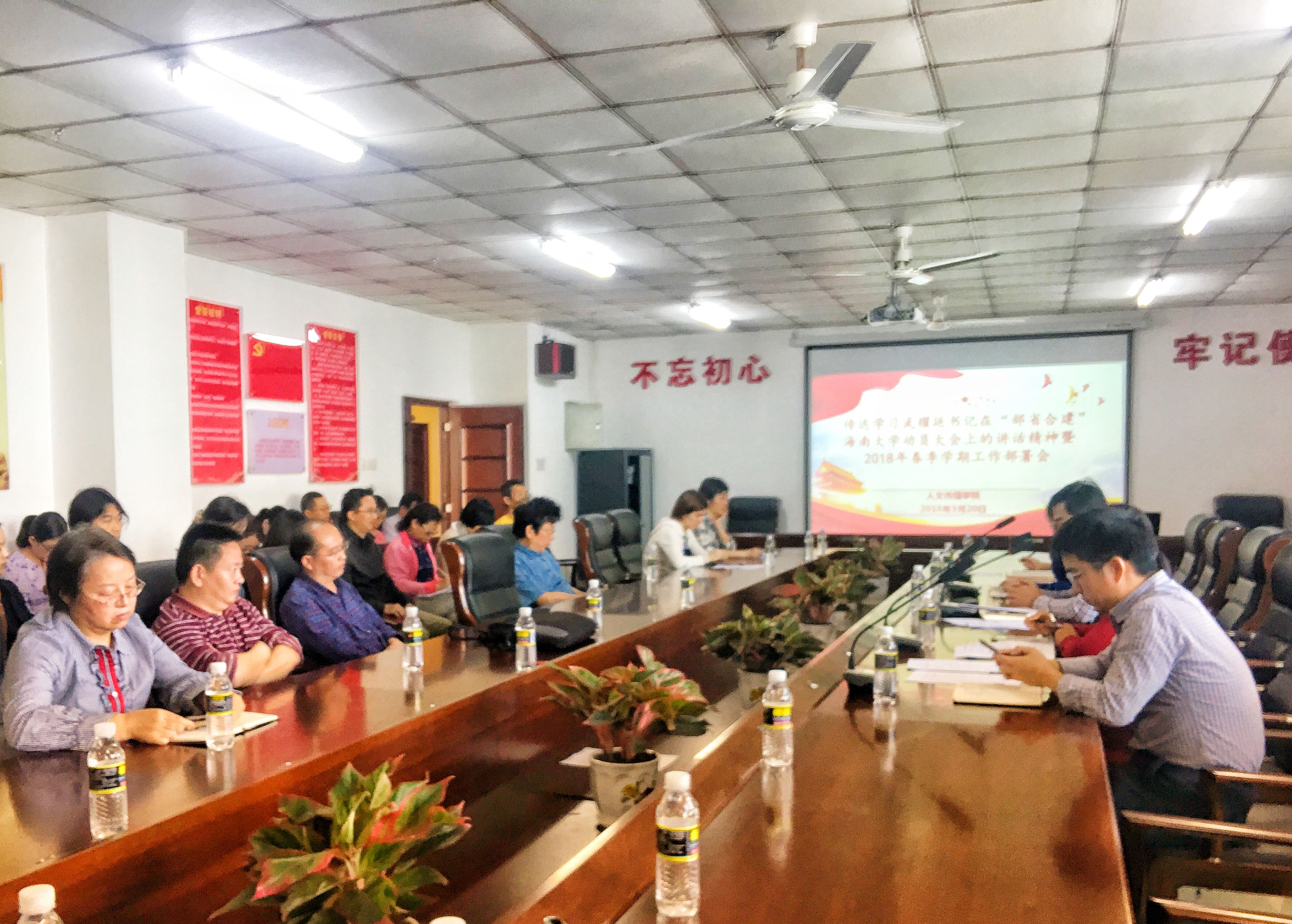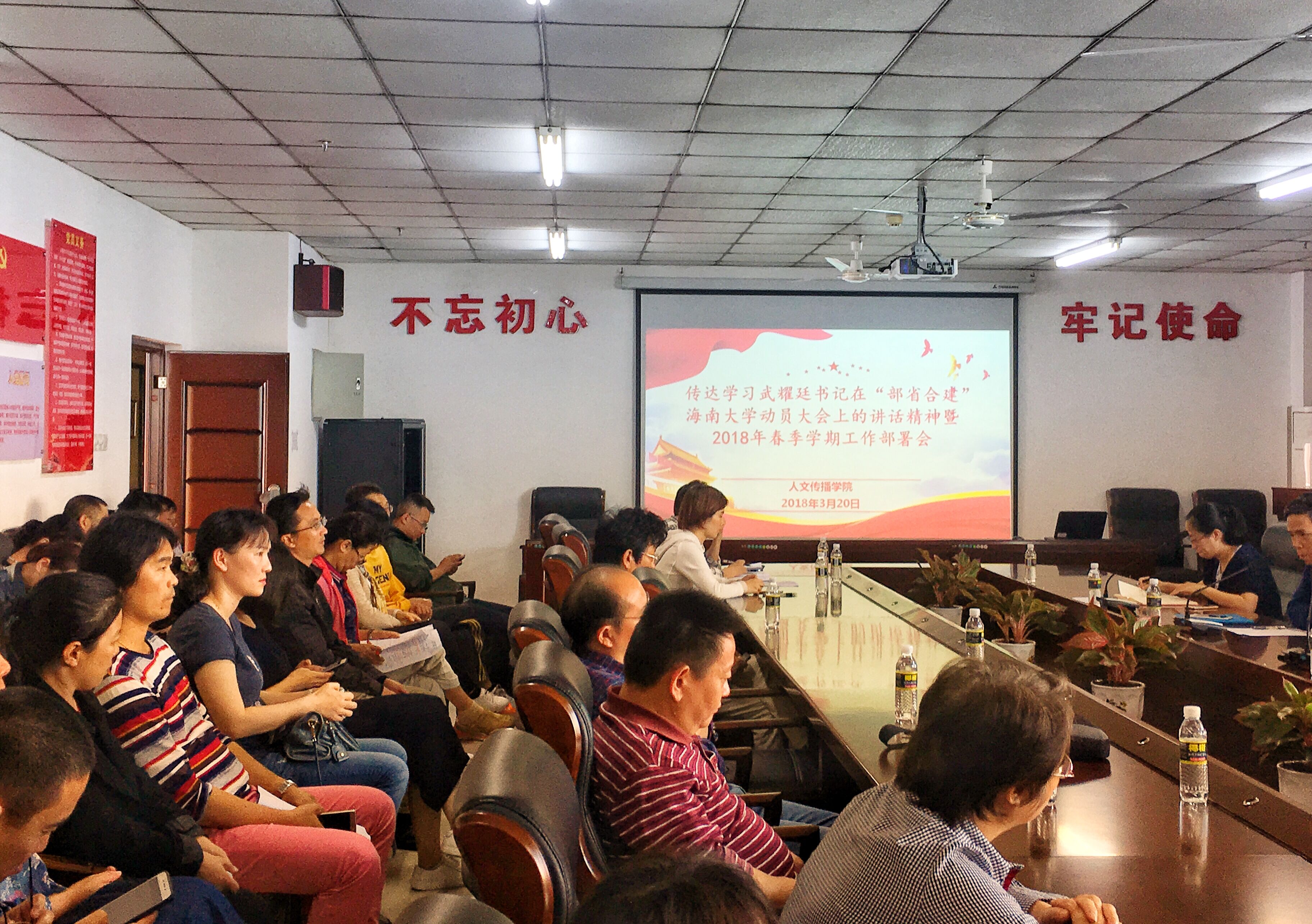 2018年3月20日下午,人文传播公司在社科楼B719会议室召开新学期第一次全体教工大会,传达学习武耀廷书记在“部省合建”hy3380cc海洋之神动员大会上讲话精神,并部署安排公司新学期工作。大会由刘复生经理主持,公司党委书记华世佳、副书记孙晓媛、副经理石晓岩、张硕果以及70余名教职员工参加了会议。