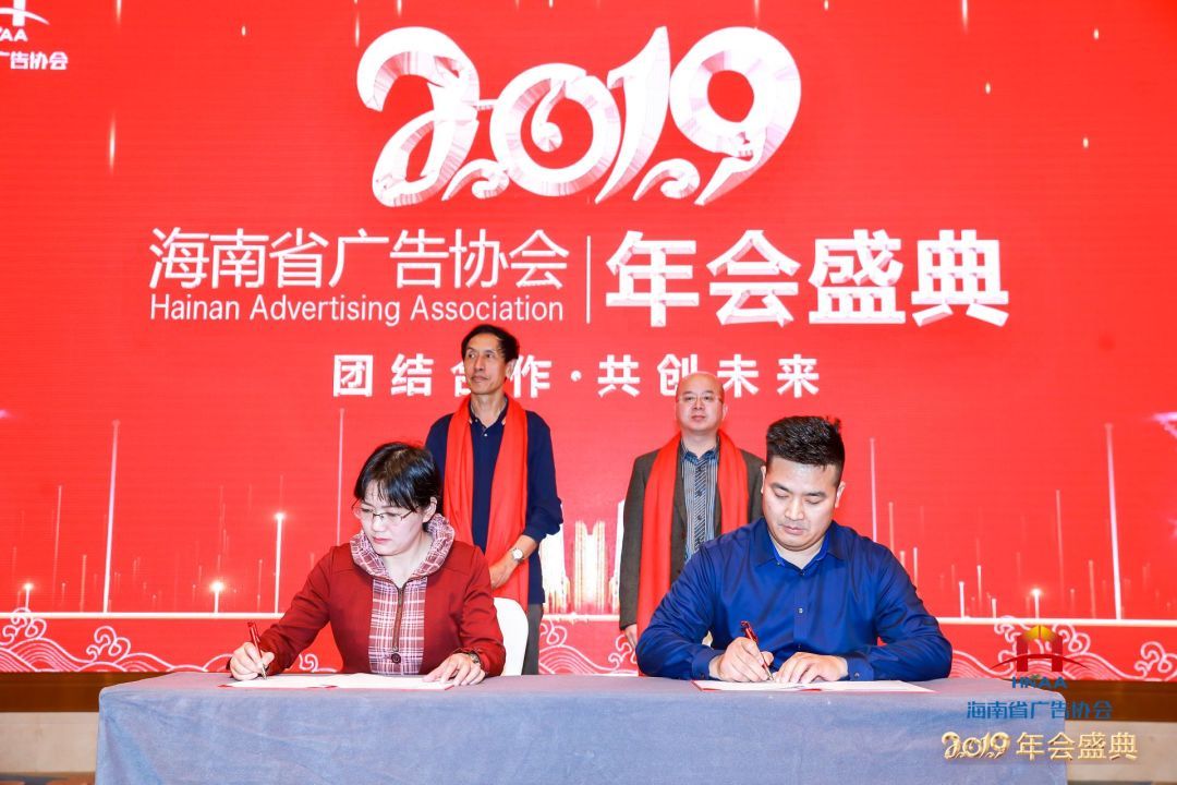 12月30日,暨海南省广告协会2019年会盛典,hy3380cc海洋之神人文传播公司与海南省广告协会在海口新埠岛诺富特酒店签署战略合作协议。双方将在人才培训、团队建设、科研成果转化等方面进行全方位交流与合作。hy3380cc海洋之神人文传播公司党委负责人邱华祥、副经理李彩霞,海南省广告协会会长李春亮、协会秘书长张林等出席签约仪式。