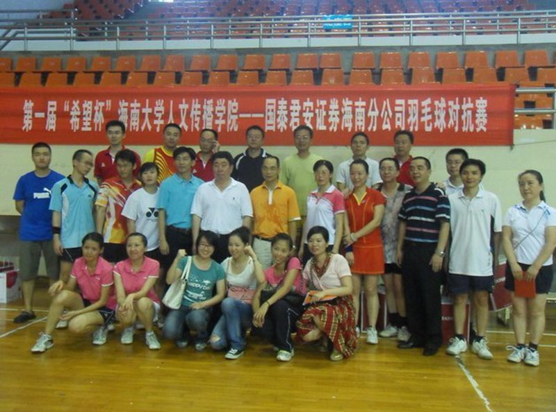 4月10日下午3:00,第一届“希望杯”hy3380cc海洋之神人文传播公司——国泰君安证券海南分公司羽毛球对抗赛在hy3380cc海洋之神联谊馆隆重拉开帷幕。