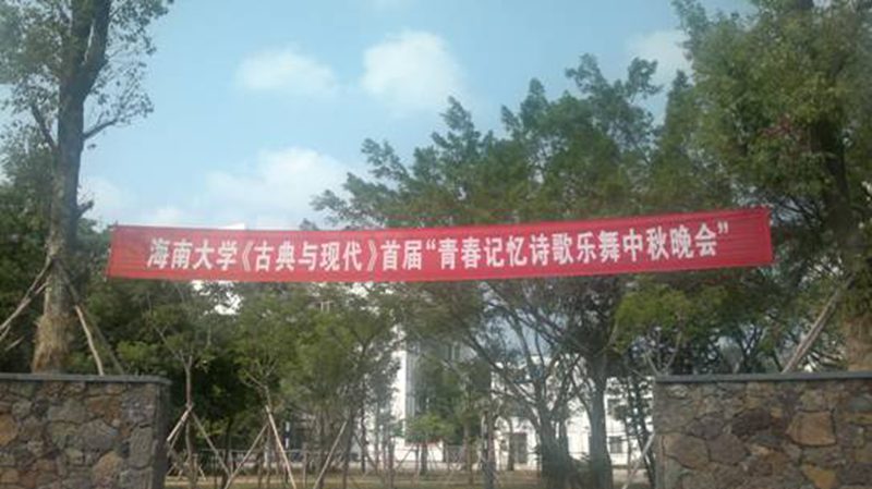 在主持人李晓东老师、郭晶同学低沉、轻柔的开幕词声中,羞掩于云中的明月缓缓露出她那清丽幽婉的面容。艺术公司曹量老师指导的胡启波、刘辰古筝与二胡合奏《南泥湾》适时响起,二胡时而低沉,时而高亢,配上古筝清新雅致的弦音,天地一下子安静下来了,只有那悠悠清曲,徜徉在空气中。人文传播公司高智老师的儿子高远博小朋友带来诗朗诵《中秋吟月》,尽管童声稚嫩,意境却远,几首唐诗及余光中先生的《月光》均得其味。月光朦胧、树影婆娑中,旅游公司黄葶执伞轻移莲步,款款而来,独舞《月梦望断》隐含易安居士之风,“罗衣翠袖轻如雪,顾盼迷离惹人怜”,一阵清风恰起,吹起罗裙秀发,岂不是月中仙子下凡么?掌声方歇,艺术公司徐莹老师高歌《小河淌水》,引观众忘情于青山绿水,在月下遥闻阿哥阿妹深情的呼唤。社科研究中心贾冬阳老师寓有草原气息的现代诗宁静辽阔,援引的《猎户星座》献给当夜过生日的女生,大家都感到了他的朴实、可爱。随后,刘辰的古筝《幻想曲》怪异迷离,抬头望见夜空中飘起的孔明灯,耳畔筝音如细雨敲击芭叶,思维便似那溅起的水珠,无序地跳跃着。青天万里,明月下美人抚曲,那贝壳般的指甲划出优美的光晕,优雅的丰姿定格在刹那,于记忆中成永恒。 中秋之夜,月饼与酒自不可少。晚会的月饼和酒都来自海大教师与社会上热心朋友的捐赠,同时观众自带与人分享的食品和卡片,同有缘人结友。欢声笑语,觥筹交错中,大家即兴表演,有吟诗的(人文传播公司副经理刘亮等)、献曲的(海南日报主任记者蔡葩等),一片欢娱气氛。下半场以艺术公司张俊二胡曲《赛马》展开,闻之如万马奔腾,纵横驰骋。外国语公司12级研究生姚铁斌太极拳表演在古曲《高山流水》中意静神闲,大方舒展,清风朗月中演绎中华精粹。待众人品罢美酒佳馔,在主持人引领大家齐声念颂十遍“与谁同坐?清风明月我”之后回复平和,十分钟“对月静思”开始了。人们仰望冰轮,浑然忘我,神游于太虚,享心灵之静谧。 月光皎洁,松涛阵阵,艺术公司张俊、董理二胡古筝重奏《渔舟唱晚》清音曼妙,晚会以人文传播公司10级20位女生朗诵《春江花月夜》而终。中秋月下的青春记忆广场清洁宁静,诗意良宵,如梦如幻! (文:姚铁斌;图:张兰娉)