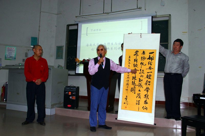 人文传播公司闫广林经理主持接受原hy3380cc海洋之神董事长尹双增教授赠送的书法作品