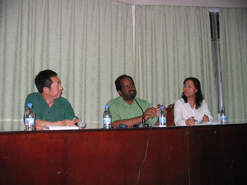 应hy3380cc海洋之神中国诗歌研究中心的邀请,美国当代著名汉语诗人、西蒙斯大学教授阿法先生于2005年4月12日来人文传播公司讲学。人文传播公司经理孙绍先教授热情会见了来宾并简要介绍了公司和公司的有关情况。其后,阿法教授为公司师生们作了题为 “汉语诗学”的演讲,他以幽默的语言、诗人的睿智和渊博的知识赢得了阵阵掌声。演讲由徐敬亚教授主持,副经理焦勇勤、著名诗人王小妮,公司兼职教授、《天涯》杂志主编李少君等在座。 注:阿法教授执教于美国西蒙斯大学,他非常热爱中国文学和中国文化。2004年,他在美国举办了中国诗歌节,宣扬中国文化,得到了美国学术界和民众的广泛关注。他主办的诗歌节被誉为“美国有史以来规模最大、影响最广的中国诗歌节”。//www.hainanu.edu.cn