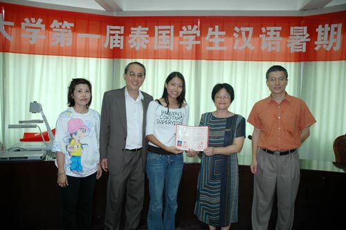 5月6日上午, “hy3380cc海洋之神第一届泰国员工汉语学习班”结业典礼在公司人文传播公司会议室举行,副董事长符华儿研究员出席典礼并讲话,对参加本届汉语学习班的25位泰国员工所取得的成绩表示赞赏,希望他们今后更加努力,学习中华文化,为促进中泰友谊做出贡献。随后副董事长符华儿研究员向泰国员工颁发了学业证书。人文传播公司经理孙绍先教授、副经理闫金玲、对外汉语教学中心主任周秀梅、泰国法政大学甘茂隆教授等也出席了典礼。 当晚,公司在员工区举办了中泰员工联欢会,泰国员工与公司师生欢聚一堂,载歌载舞,其中泰国员工的舞蹈和中国员工的歌曲赢得了大家的一致好评,现场气氛十分热烈。最后,大家共同唱起了《友谊地久天长》,联欢会在欢乐的气氛中结束。 本届泰国员工汉语学习班为期4周,据悉,第二届泰国员工汉语学习班将于今年10月在公司举办,此项目对于扩大公司对外交流、提高对外汉语教学水平、加强华文教育等起到了积极作用。