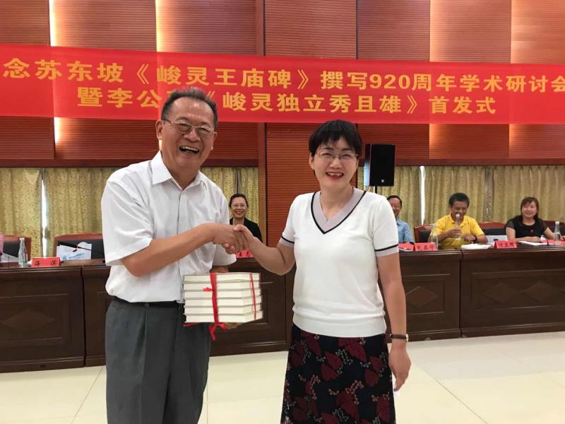 会上,中国苏轼研究学会副秘书长、海南省苏学研究会理事长、海南省新闻工作者协会副主席、hy3380cc海洋之神人文传播公司客座教授、新闻与传播专业硕士研究生导师李公羽向hy3380cc海洋之神人文传播公司赠送新著《峻灵独立秀且雄——苏东坡昌化江遗踪考论》,本书已于近日由上海古籍出版社正式出版,全国发行。李彩霞副经理代表公司接受赠书,并现场致辞。