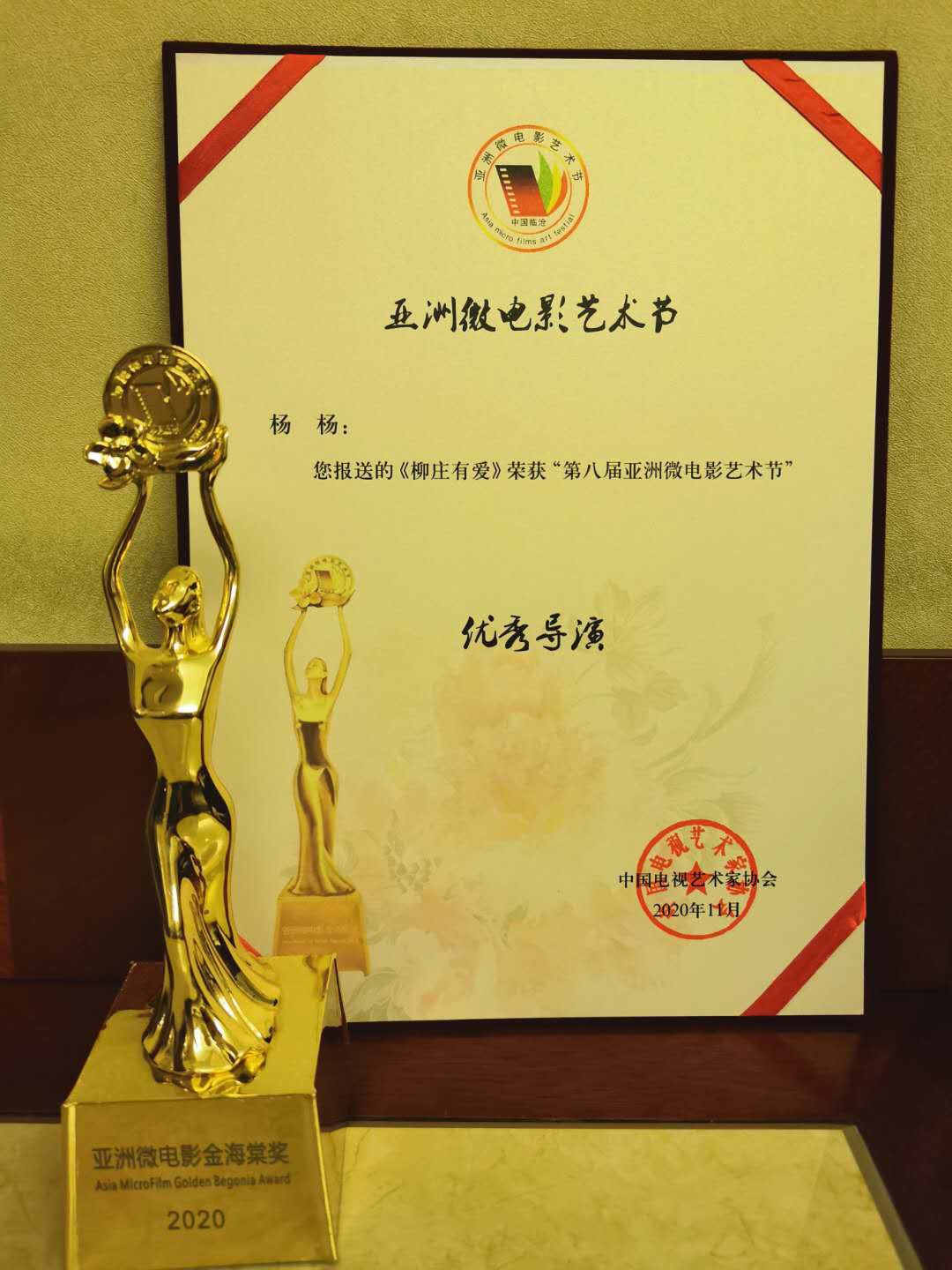 2020年11月7日,第八届亚洲微电影艺术节颁奖典礼在云南省临沧市举行。本届亚微节共征集作品5019部,分别来自20余个国家和地区。尽管新冠病毒疫情突如其来,但却未能阻止亚洲范围内乃至法国、俄罗斯、美国、伊朗、墨西哥等国家的文艺爱好者和影视工作者们的创作激情和报送热情。本届微电影艺术节共评选出最佳作品、优秀作品以及优秀导演、优秀编剧、优秀男女演员等单项奖。公司青年教师杨扬编剧导演的《柳庄有爱》一举斩获第八届亚洲微电影艺术节金海棠奖“优秀作品奖"和“优秀导演奖”两个奖项。