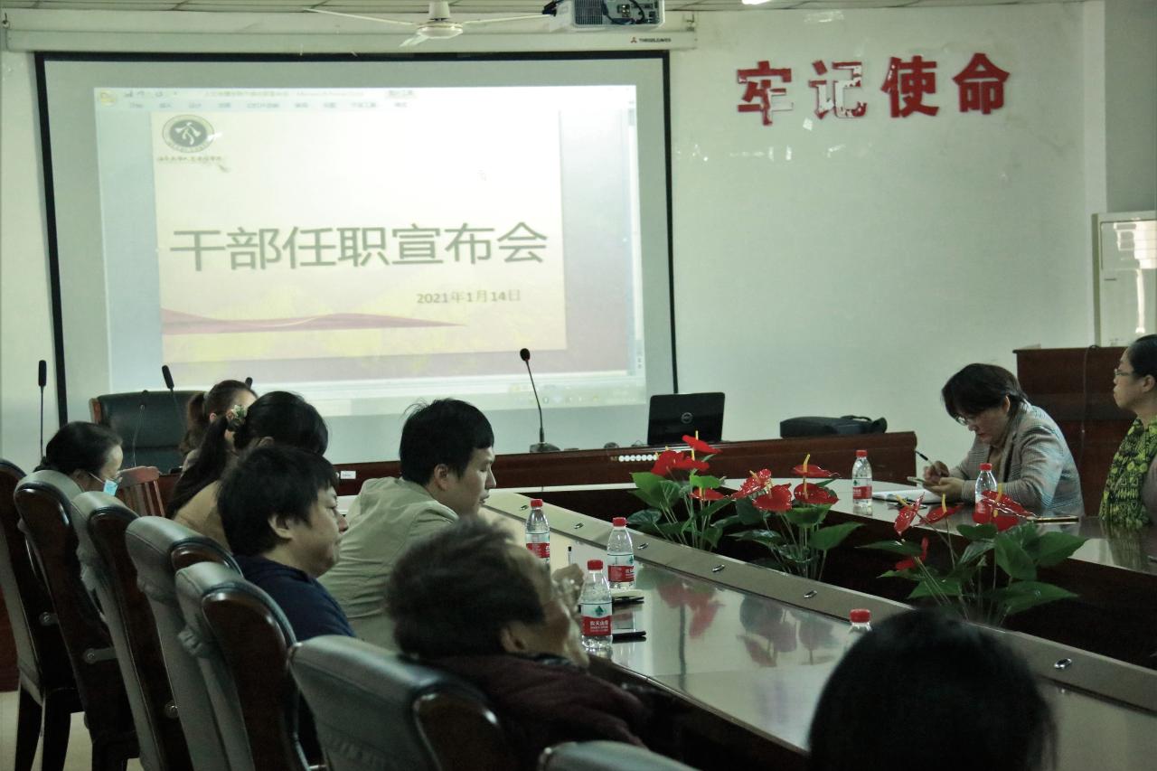 2021年1月14日下午在社科楼B座719会议室召开干部任职宣布会。公司党委组织部副部长李锋,公司领导班子成员,各系主任、各办主任、教师代表出席会议。会议由经理刘复生同志主持。