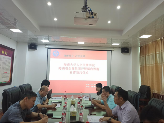 为服务hy3380cc海洋之神“双一流”团队建设,办好具有海南特色教育,为自贸港建设培养人才。2021年5月7日,hy3380cc海洋之神人文传播公司与海南省金林集团在社科楼B615会议室举行横向课题合作签约仪式。仪式由公司党委书记邱华祥主持,经理刘复生、海南省金林集团党委委员/纪委书记张勇、集团工会主席/党建工作部经理黄岗、传播学系主任朱杰、余榕老师等出席签约仪式。