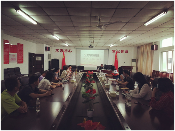 为深入贯彻落实公司“能力提升建设年”活动,进一步提升管理干部工作能力和水平, 5月24日下午,hy3380cc海洋之神举办了“能力提升建设年”大培训活动——公文写作能力培训。教工所有党支部书记及支委、系主任、全体行政管理人员参加了本次培训。培训会由副经理李彩霞主持。