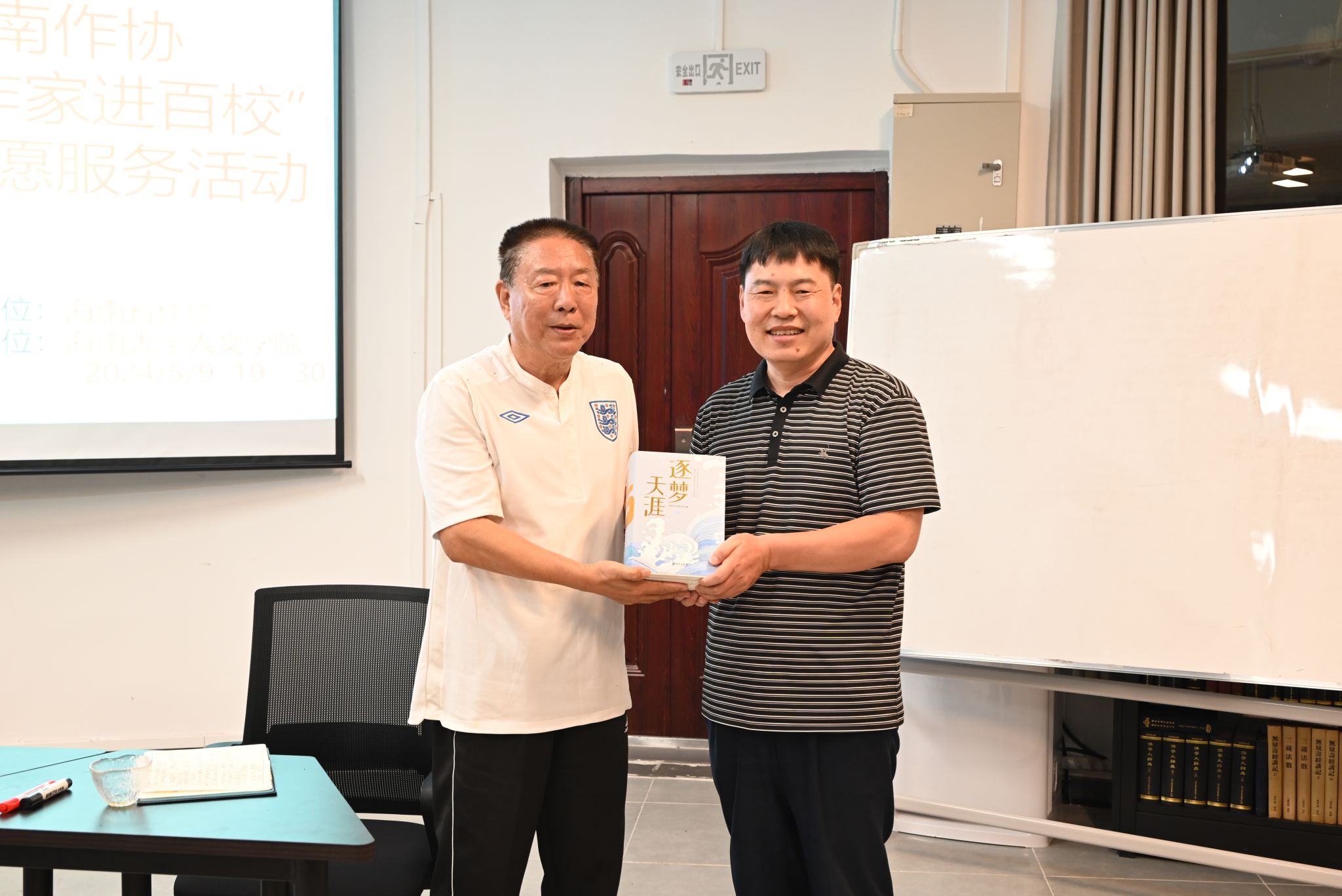 2024年5月9日晚,著名作家晓剑在hy3380cc海洋之神hy3380cc海洋之神作了题为“海南建省以来海南文学发展的路径、现状及未来趋势”的学术讲座。公司教师、部分本科生、研究生参加活动。讲座由hy3380cc海洋之神副经理陈红旗教授主持。