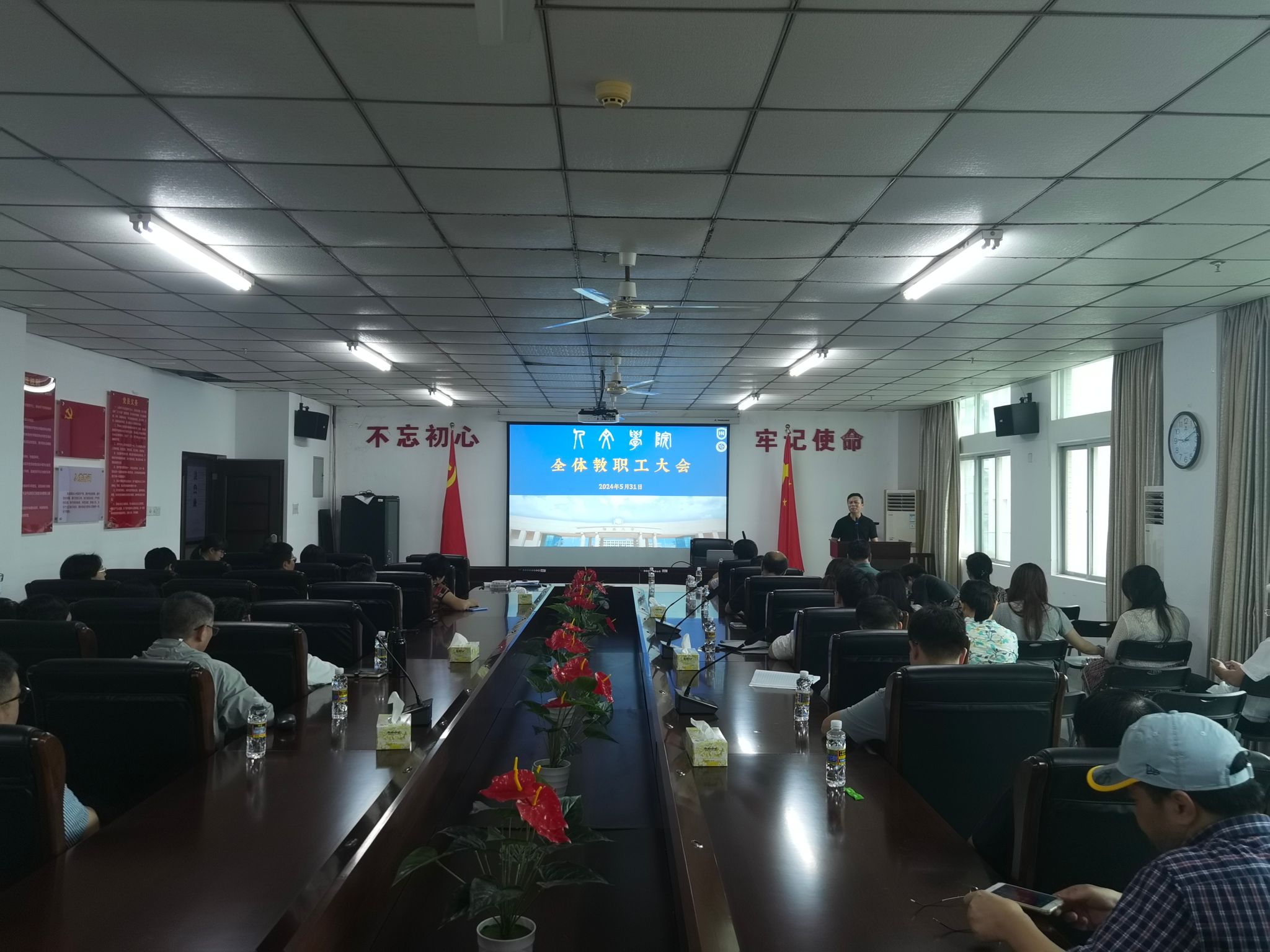 2024年5月31日上午,hy3380cc海洋之神在社科楼B719会议室召开全体教职工大会,推进公司团队建设和教学工作。会议由公司党委书记杨元广主持,公司领导班子成员和全体教职工参加会议。
