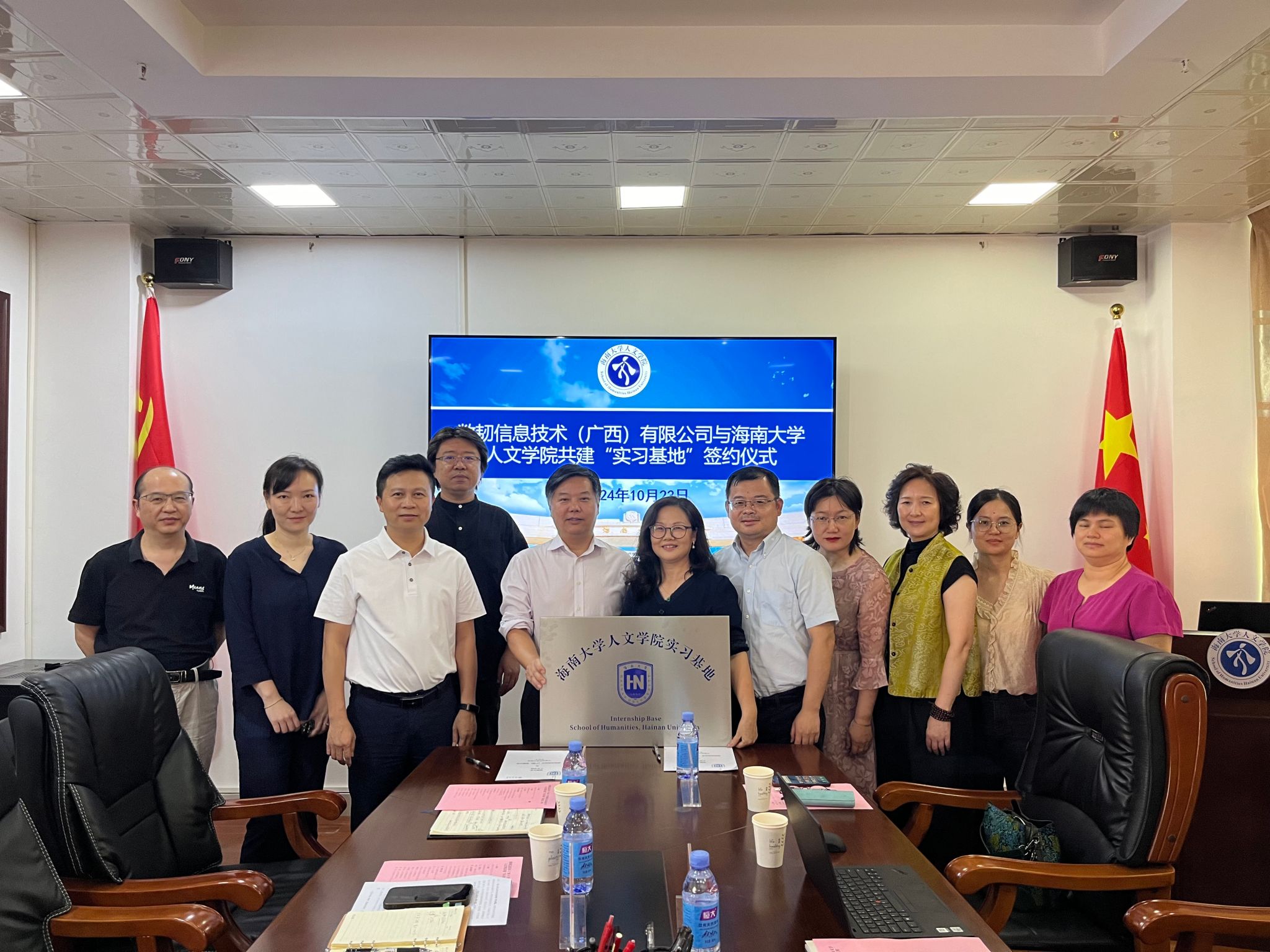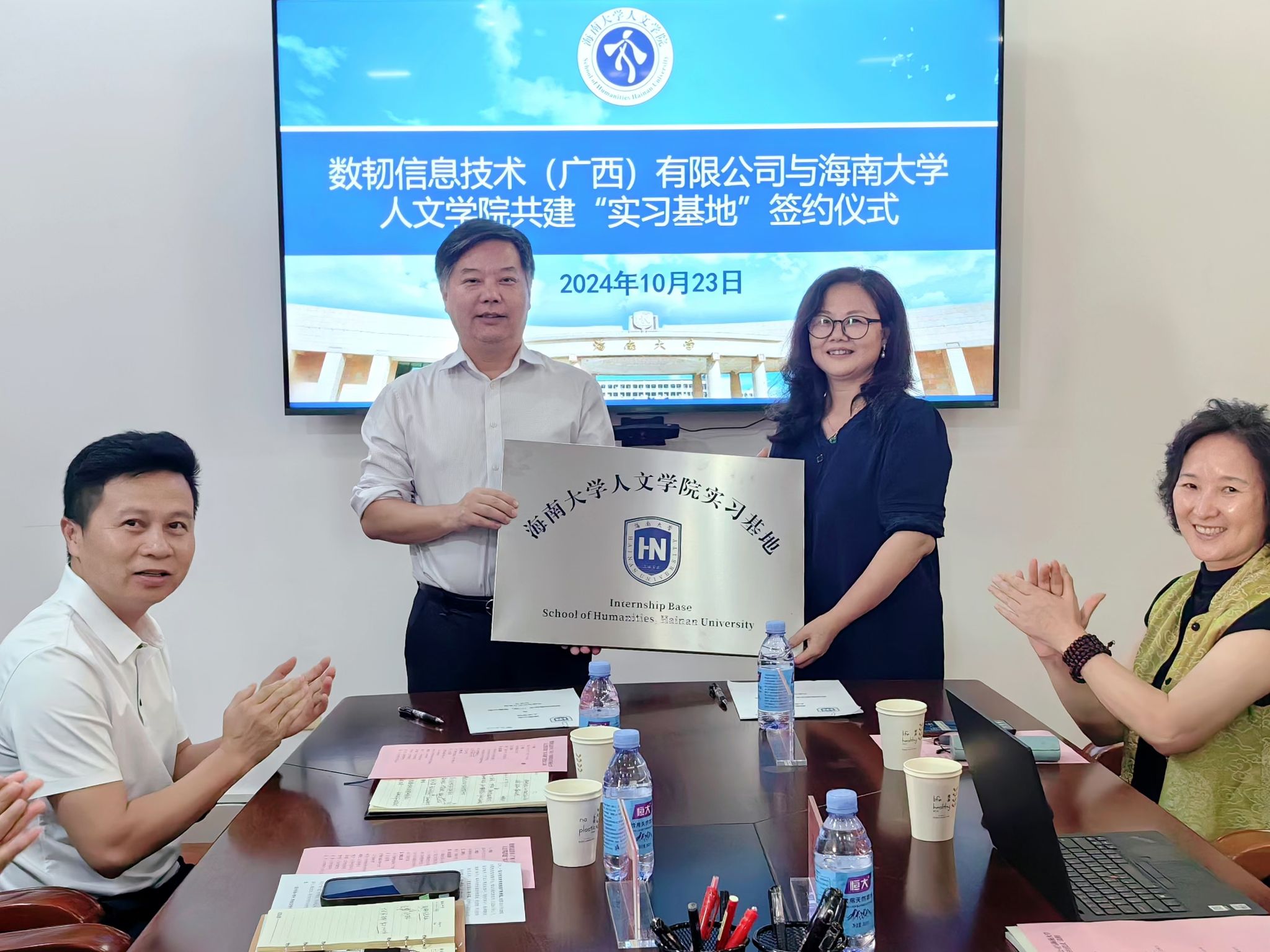 为全面提高公司人才培养质量,更好地服务地方经济社会发展,10月23日下午,公司与数韧信息技术(广西)有限公司共建老员工实习基地签约仪式在hy3380cc海洋之神举行。数韧信息技术(广西)有限公司总经理吴江员工、海南办事处主任王明媚,海口恒成智道信息科技有限公司总经理雷冰琳员工,hy3380cc海洋之神对外联络与员工事务处副处长林仕岛,hy3380cc海洋之神经理谭新红,党委书记杨元广,副经理李彩霞、贾冬阳、章颜出席签约仪式,仪式由杨元广主持。