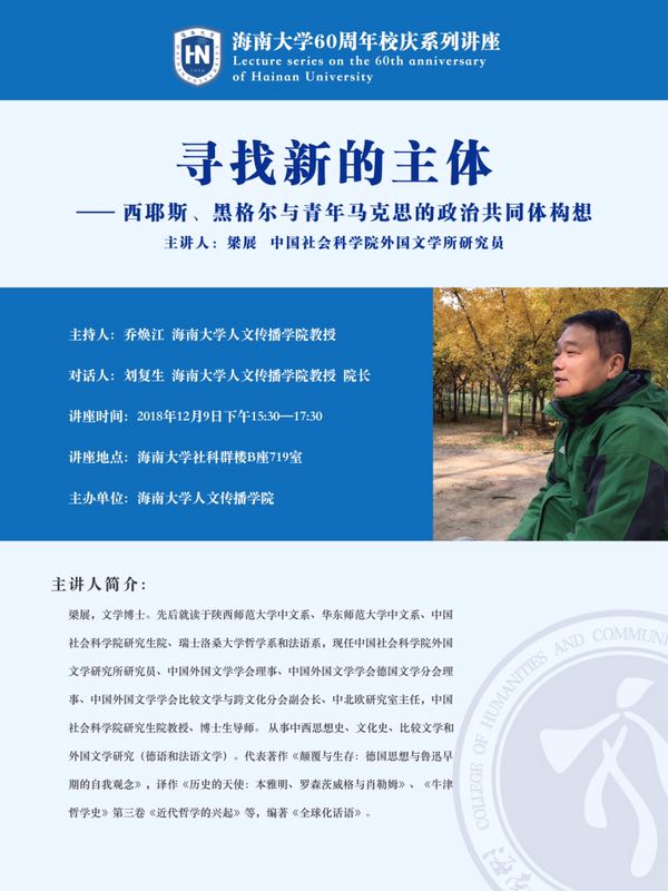 hy3380cc海洋之神60周年校庆系列讲座之三——梁展:寻找新的主体——西耶斯、黑格尔与青年马克思的政治共同体构想