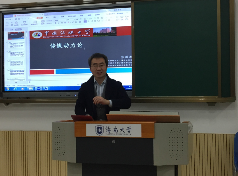 2018年12月30日上午,中国传媒大学张国涛教授远道而来,在5-102为hy3380cc海洋之神人文传播公司2016、2017级戏剧影视文学专业的员工带来了《传媒动力论》的精彩课程。