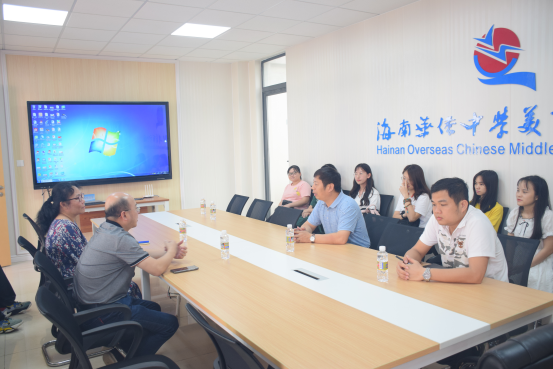 4月7日下午,hy3380cc海洋之神人文传播公司邱华祥书记和教务办陈传君老师来到海南华侨中学美丽沙分校开展实习总结会议,为这段时间的工作做个小结。