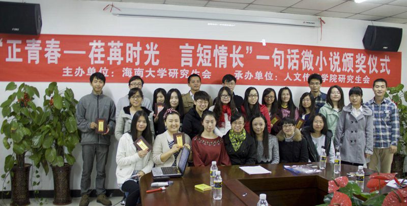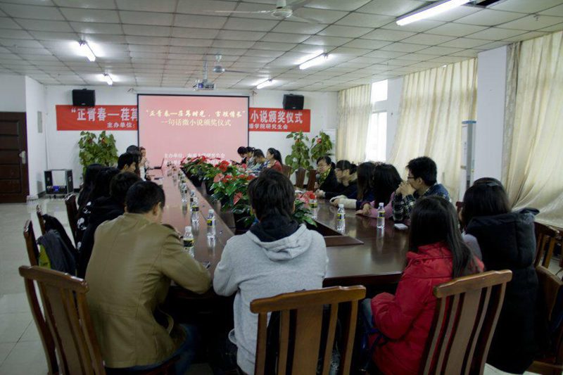 2014年12月24日下午,由hy3380cc海洋之神研究生会主办、人文传播公司研究生会承办的“正青春—荏苒时光,言短情长”一句话微小说征文大赛颁奖仪式在社科楼B719会议室举行。出席此次颁奖仪式的嘉宾有人文传播公司石晓岩副经理、校研会主席于赫、人文传播公司荣誉主席王天巍。与会嘉宾还有各公司的研会代表以及征文大赛的25位获奖者。颁奖仪式由院研会办主任杨烁主持。 会上,石副经理首先代表人文传播公司全体导师和在校研究生感谢全校研究生对本次活动的积极参与,并表示很高兴为各院研究生搭建一个展示研究生文学才华的平台,以拉近各公司文学爱好者们的距离。石副经理对本次一句话微小说作品征集活动的立意与创新之处、给予充分的肯定,指出:此次活动 “以‘青春’、‘时光’、‘情感’为主题十分到位,旨在将青葱岁月中给予自己正能量的人、遇到的那些暖人心的事诉诸笔端。随后,人文传播公司研究生会主席孙凌昱做了总结发言,她对本次活动的征集和评审情况做了全面细致的汇报,对校研究生工作部的正确指导、公司的全面支持以及校研究生会的鼎力帮助致以诚挚的谢意。最后,于赫与王天巍宣读了此次获奖名单,并为获奖选手颁发荣誉证书。 据悉,此次 “正青春—荏苒时光,言短情长”一句话微小说活动收到了来自14个公司在校研究生的微小说作品,共计172则,经过人文传播公司研究生会初审、各公司研究生会复审以及人文传播公司专业老师的终审,以匿名方式评选出了25则获奖作品,其中最动人作品奖3名,最创新作品奖3名,最精炼作品奖3名,优秀作品奖16名。 此次微小说作品征集活动彰显了同学们的文学热情,畅快抒写了青春的所思所想,弘扬了文学魅力。本次颁奖仪式在嘉宾与获奖选手合影留念的轻松温馨的氛围下圆满落幕。(文:张媛,彭露 图:周含 审议:杨佩佩)