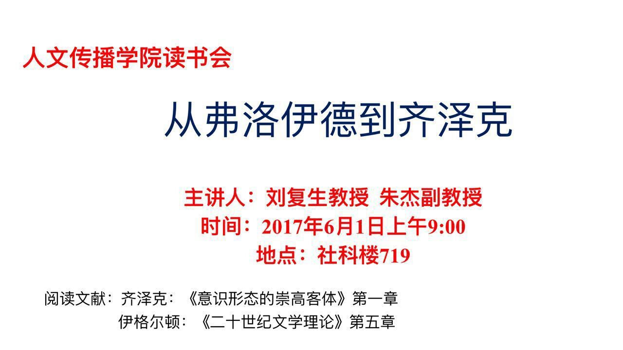 2017年6月1日,hy3380cc海洋之神人文传播公司于社科楼B719室举办了“从弗洛伊德到齐泽克”读书会。本次读书会由刘复生老师主讲,朱杰老师主持。公司部分教师、中国语言文学专业研究生及部分本科生参与了本次读书会的讨论。 本次读书会围绕伊格尔顿《二十世纪西方文学理论》第五章“精神分析”和齐泽克《意识形态的崇高客体》第一章“马克思如何发明了征兆”展开讨论。读书会先由研究生作读书报告,刘复生老师根据研究生读书报告进行详细地点评讲解。随后,刘老师深入浅出地讲解了齐泽克的主要思想和理论资源,并且把精神分析学派和齐泽克的思想放在西方资本主义社会发展的历史脉络中,明确了精神分析学派的革命性地位和理论的局限性。与会教师和员工积极参与讨论,气氛热烈。最后,主持人朱杰老师对此次读书会进行了精彩总结。 本次读书会作为研究生课堂学习内容的补充,丰富了同学们的理论知识,促进了师生之间的交流互动,为同学们提供了一个积极有效的学习平台,受到同学们的欢迎。同学们纷纷表示,希望今后能有更多的读书会,与老师们一同探讨交流。(撰稿:李双伶)