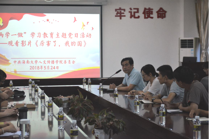 为深入学习贯彻习近平新时代中国特色社会主义思想和党的十九大精神,持续推进“两学一做”学习教育常态化制度化工作,进一步激发公司党员的爱国热情,牢固增强“四个意识”、坚定“四个自信”、做到“两个维护”。2018年5月24日晚上,人文传播公司党委组织全体师生党员及党员发展对象在海甸校区社科楼七楼观看电影《厉害了,我的国》。