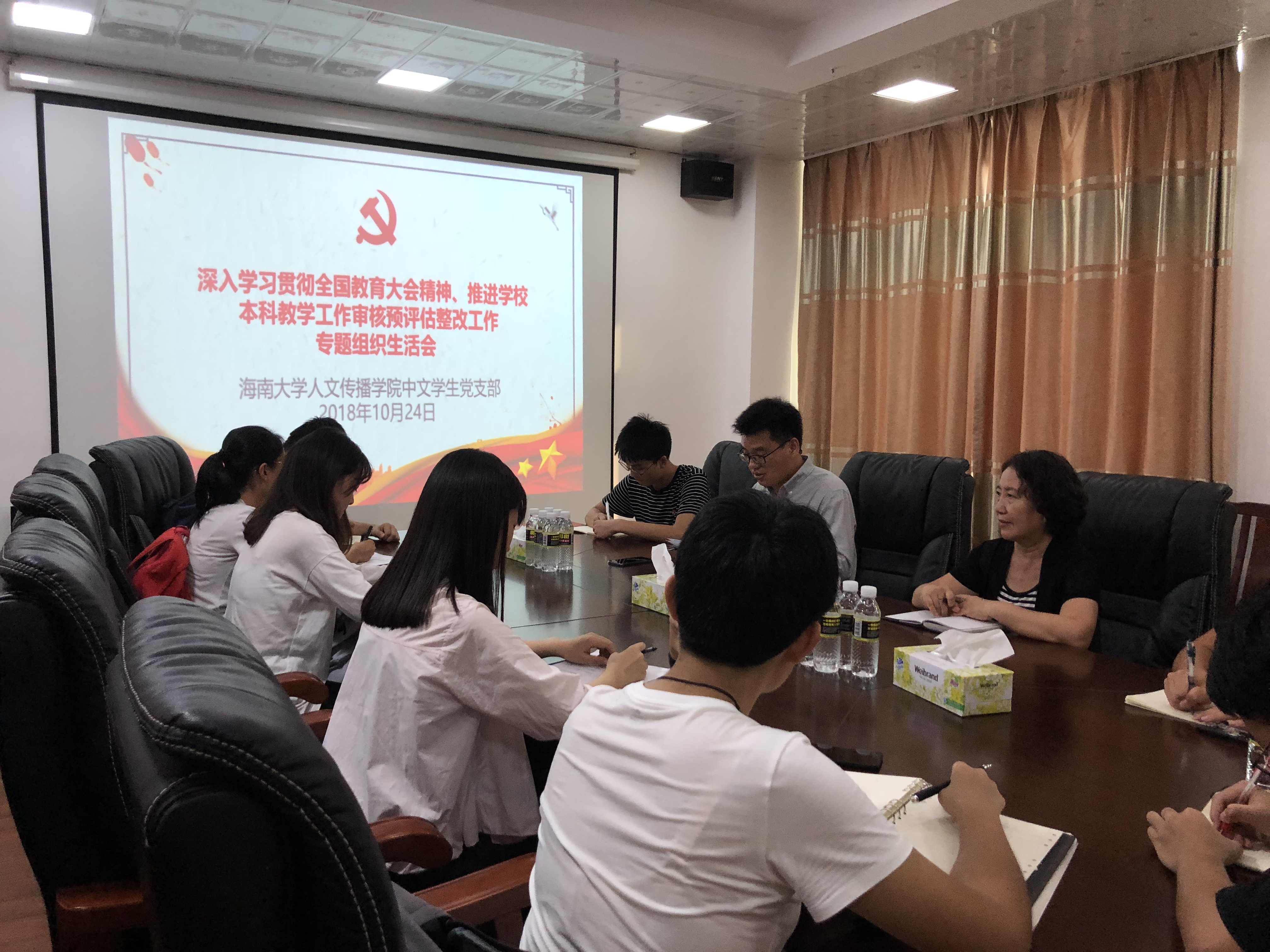 会议围绕深入学习贯彻习近平新时代中国特色社会主义思想和党的十九大精神,贯彻落实全国教育大会和教育部新时代全国高等公司本科教育工作会议精神,迎接即将开展的本科教学工作审核评估展开,支部书记带头开展批评与自我批评,同志们轮流发言,会场气氛热烈。