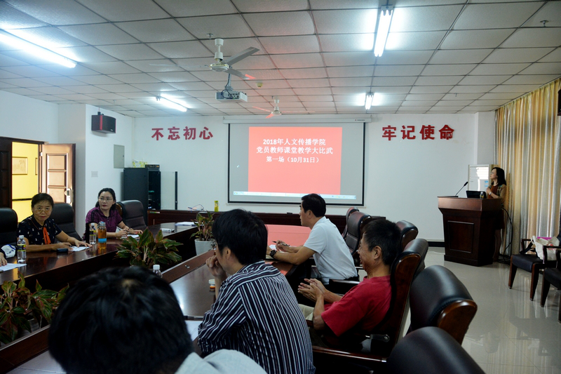 根据hy3380cc海洋之神教务处《关于开展2018年hy3380cc海洋之神党员教师课堂教学大比武专项活动的通知》精神及要求,为了确保课堂成为学习贯彻习近平新时代中国特色社会主义思想的重要阵地,促进党员教师积极担负起立德树人的重任,充分发挥党员的先锋模范作用,提高公司课堂教学质量,通过“以赛代训”的形式提高党员教师课堂教学能力,人文传播公司于10月31日下午和11月1日上午在社科楼B719会议室分别开展了两场党员教师课堂教学大比武活动,公司党委书记华世佳、经理刘复生、副经理张硕果、李彩霞以及公司督导小组成员作为评委参加了此次大比武活动。