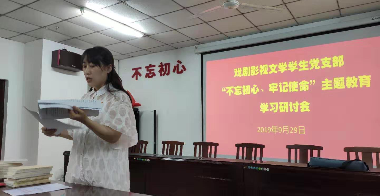 9月29日晚上,人文传播公司戏剧影视文学员工党支部组织召开“不忘初心、牢记使命”主题教育学习研讨会,会议由支部书记王嘉南主持,支部全体党员参加会议。