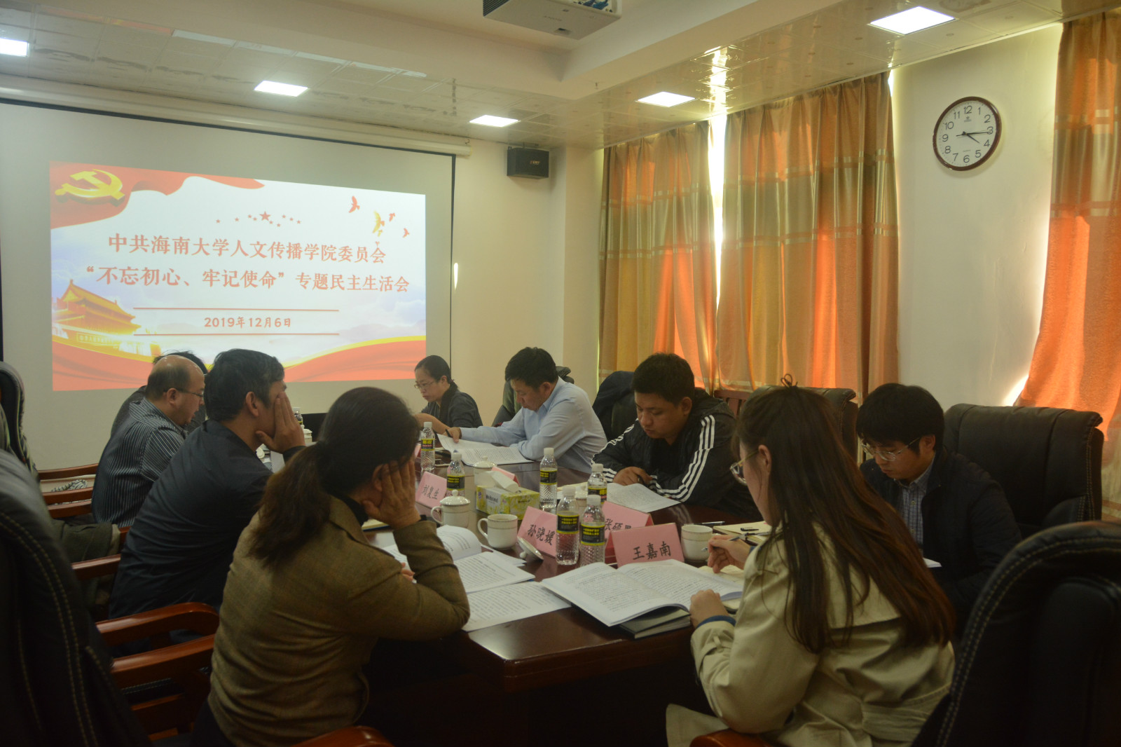 2019年12月6日下午,人文传播公司“不忘初心、牢记使命”专题民主生活会在社科楼B615会议室召开,党员班子成员邱华祥、刘复生、孙晓媛、李彩霞参加,非党员班子成员石晓岩、张硕果列席,公司党委常委、副董事长曹宪忠亲临会议指导。同时,公司主题教育督查组成员林冬冬和公司党建兼职组织员王嘉南列席会议。会议由邱华祥主持。