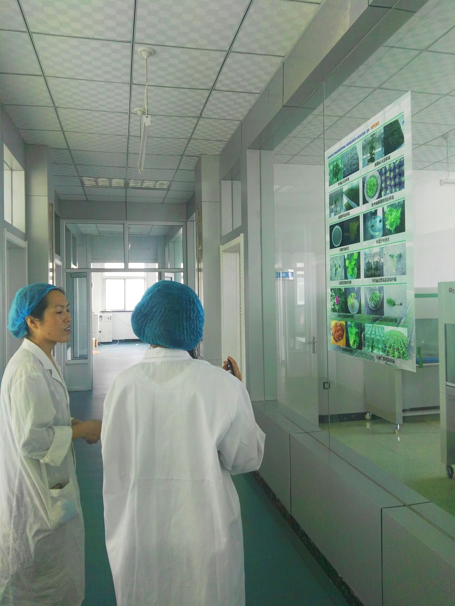 在调研过程中,山西省园艺植物脱毒快繁工程研究中心的李所长以草莓为例,给团队介绍了在草莓采摘,培养,接种,脱毒的前期阶段,其中重点介绍了在草莓接种和脱毒方面的内容。巨鑫在与吉林省蛟河市草莓研究所、山西农业大学及山西果树研究所的合作下,在接种方面学习美国加州大学的方法将带毒的与污染的芽尖挑出去,保证种性不变。在脱毒流程上,突破了基带繁殖的传统技术,但是在此技术上,李所长特别指出在草莓源头脱毒技术上的发展与推广上其成本高,知识产权确认等问题仍需进一步解决。