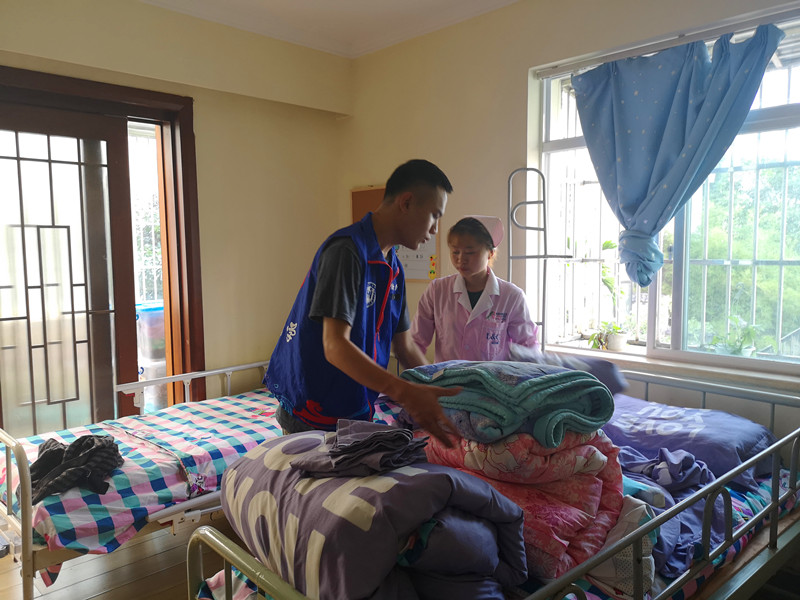 下午两时许,志愿者们在hy3380cc海洋之神城西校区西北门集合,准时向老年公寓出发。志愿者到达目的地后,在公寓管理人员的安排下有序分成三个小组,分别进入不同的楼层为老人们服务。志愿者为老人们按摩、打扫室内卫生,协助护工换床单收拾床铺,推着轮椅陪老人晒太阳、散步……志愿者仔细询问老人哪里需要按摩,力度是否舒适,适时调整手的力度轻重。有的老人还仍记得曾来照顾过自己的志愿者,熟稔地拉着志愿者的手聊天,有的老人虽然不爱讲话,但是在志愿者的贴心陪伴下,也愿敞开心扉交谈,露出了温暖的微笑。