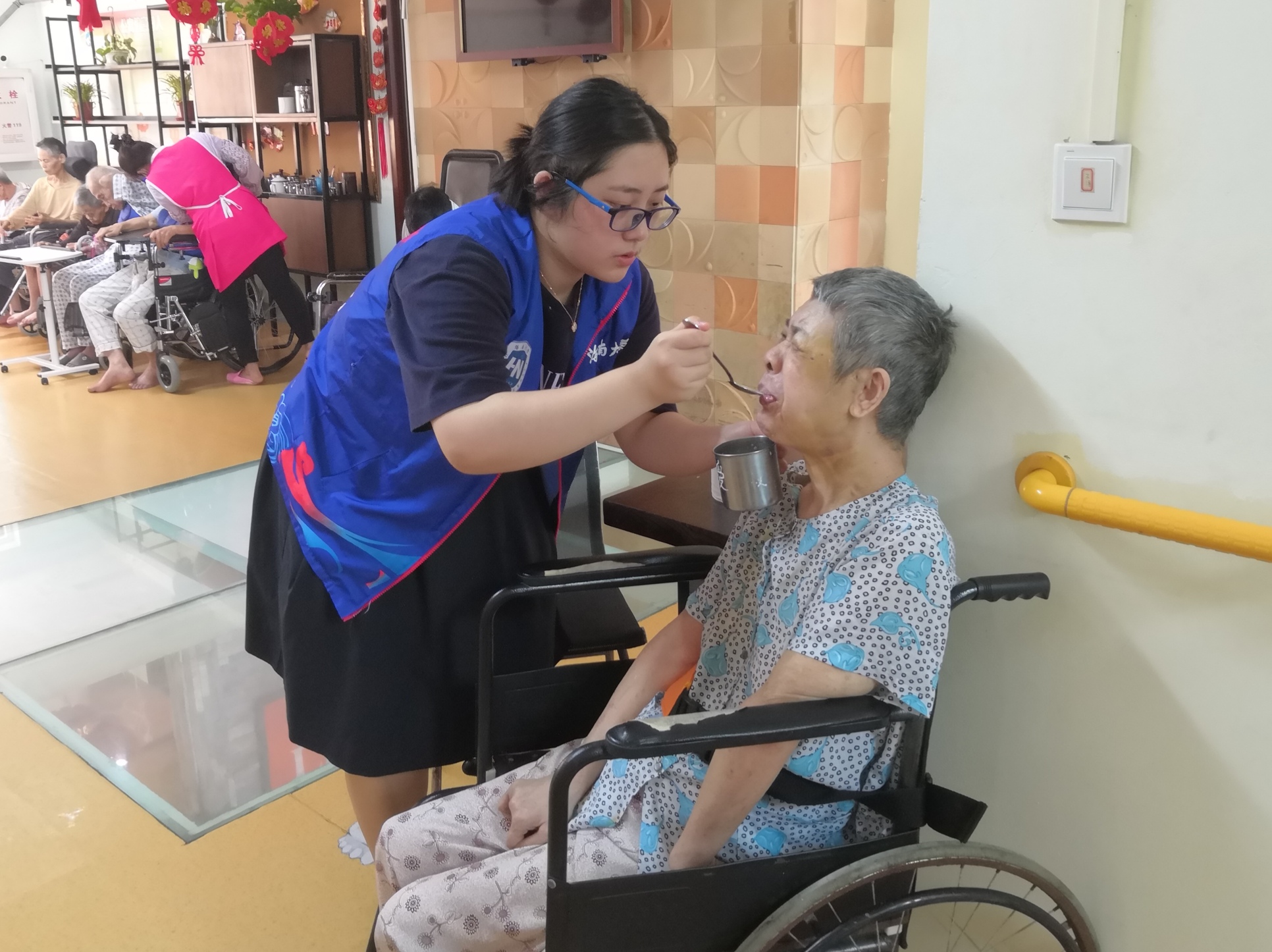 志愿者们在听带队人员讲明注意事项后,便迅速投入了工作。志愿者们提前到达活动地点,积极拖地、擦窗户、叠被子,为老人们打扫房间。从捶肩、捏腿、喂饭到聊天交谈,志愿者们用不同的方式给老人们带去了爱与关怀。在交谈中,志愿者们用自己的青春活泼为老人们带去了活力,他们也从老人们的丰富阅历中汲取到智慧。下午天气放晴,志愿者们帮助行动困难的老人下楼梯、小心翼翼地搀扶他们散步。