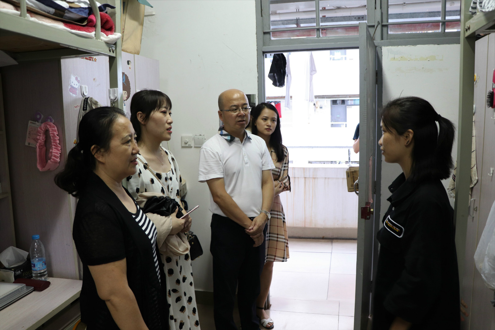公司领导老师首先走访了2018级同学宿舍,围绕校区调整后的生活,与同学们亲切交流。走访过程中,对于同学们干净整洁的宿舍环境及良好的生活习惯表示充分肯定。还就宿舍楼内布置、宿舍门口标志牌等外观上的不足展开讨论并提出改进意见。在与同学们交流的过程中,领导及老师从食、住、行等方面询问同学们在新环境的适应情况,例如对教学楼位置是否熟悉、食堂伙食是否满意、校园出行是否便利等。同时,老师们重点强调了宿舍安全问题,提醒同学们提高安全防范意识、按规范使用电器。
