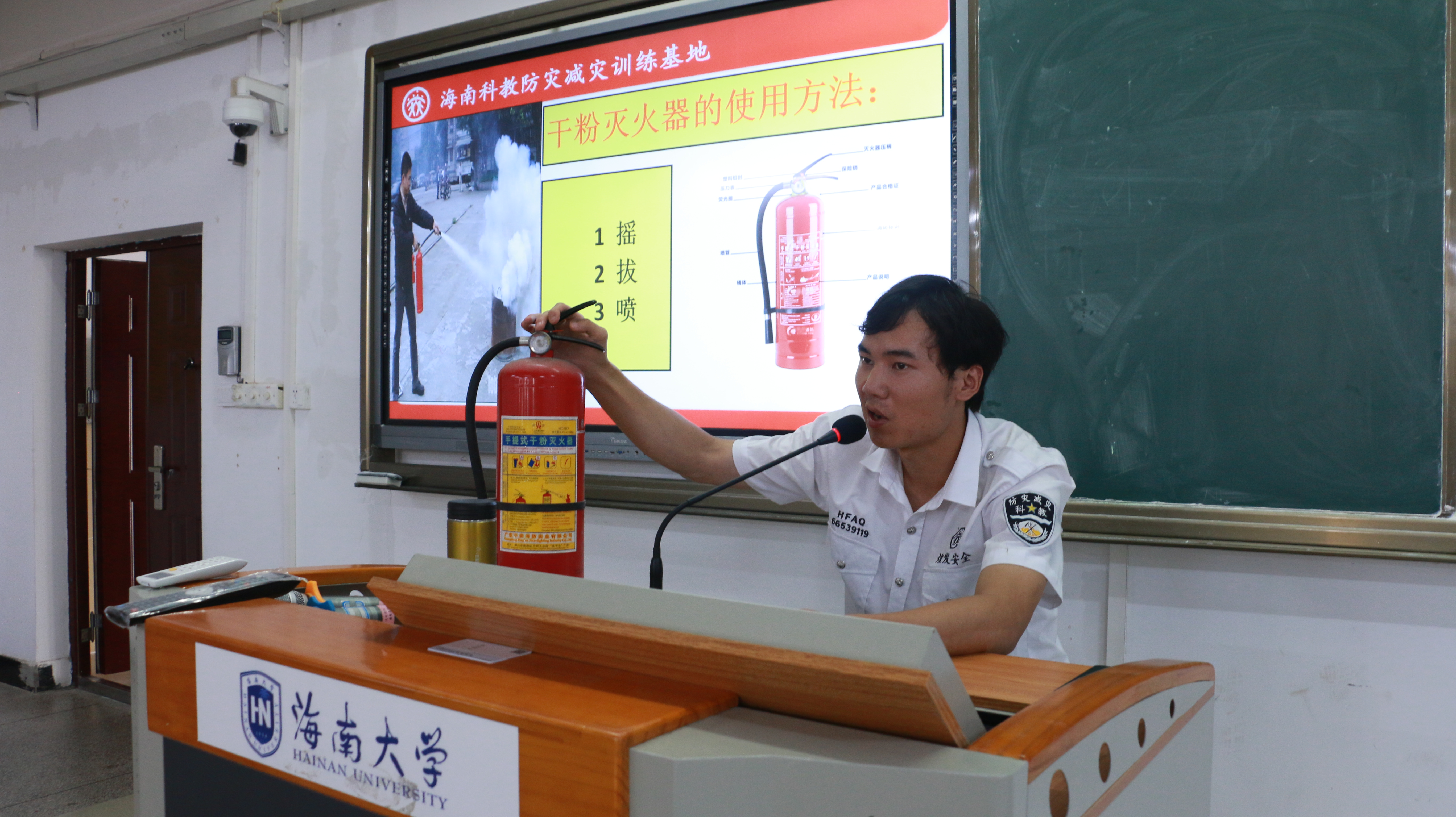 谢教官讲解灭火器使用方法