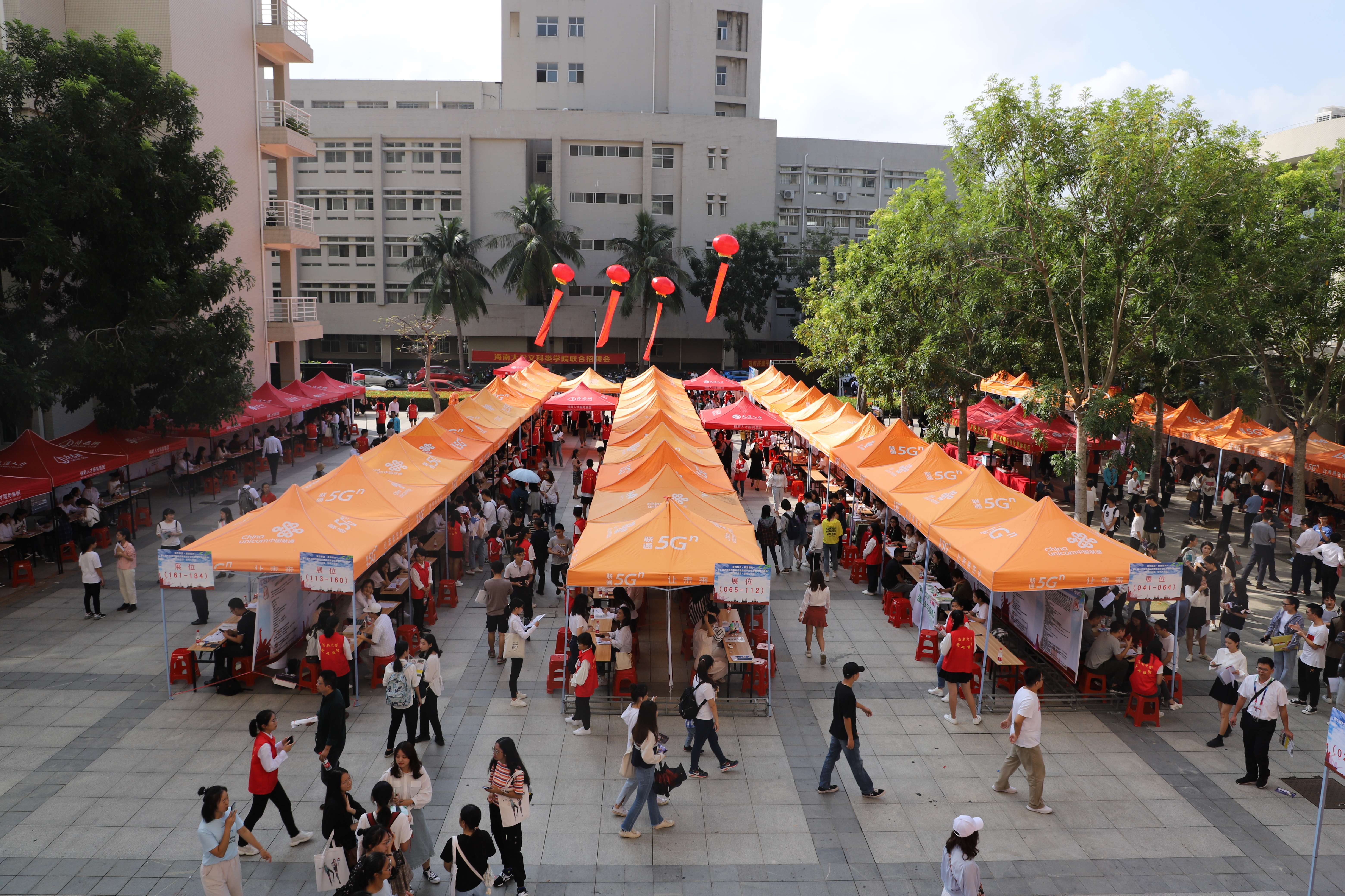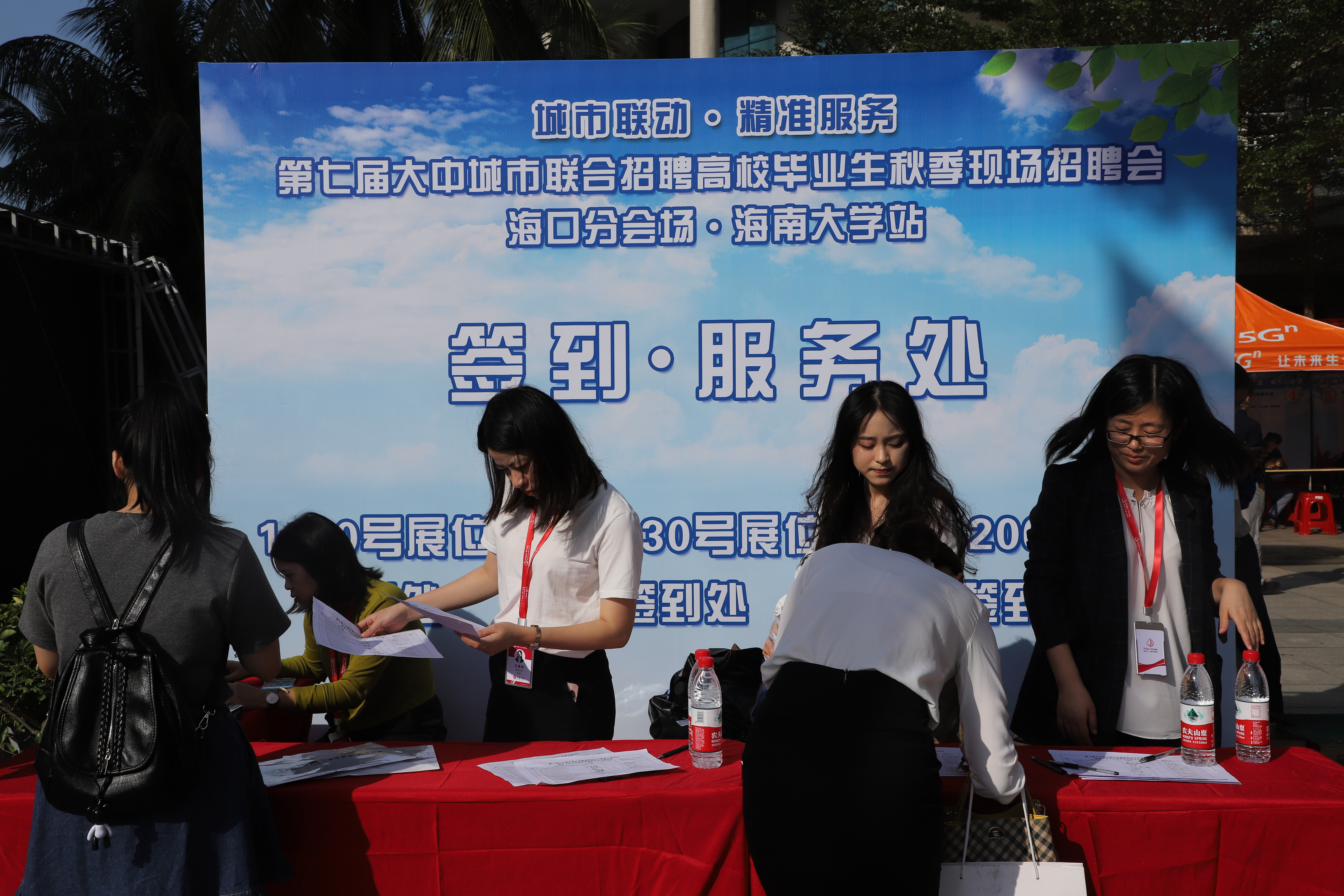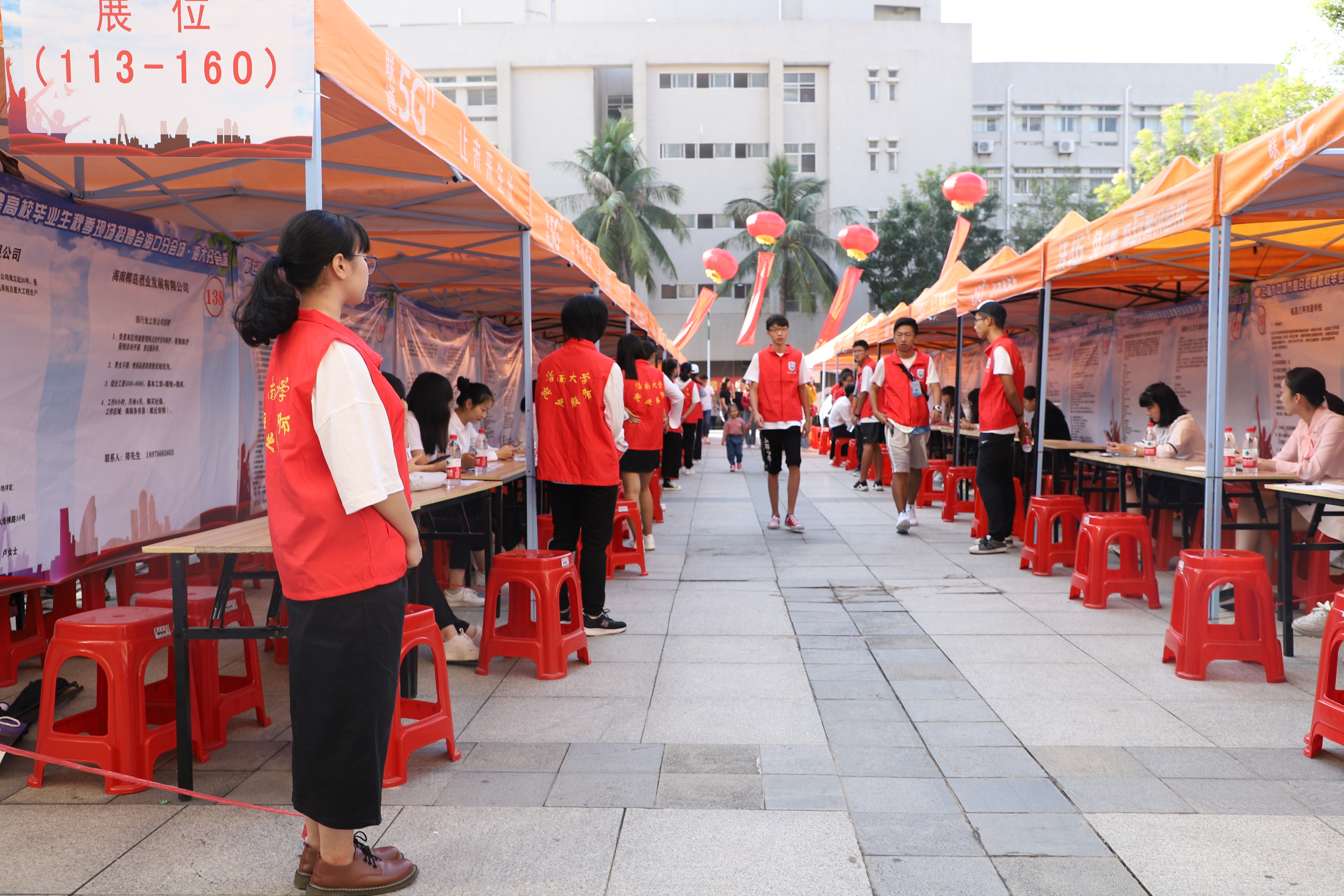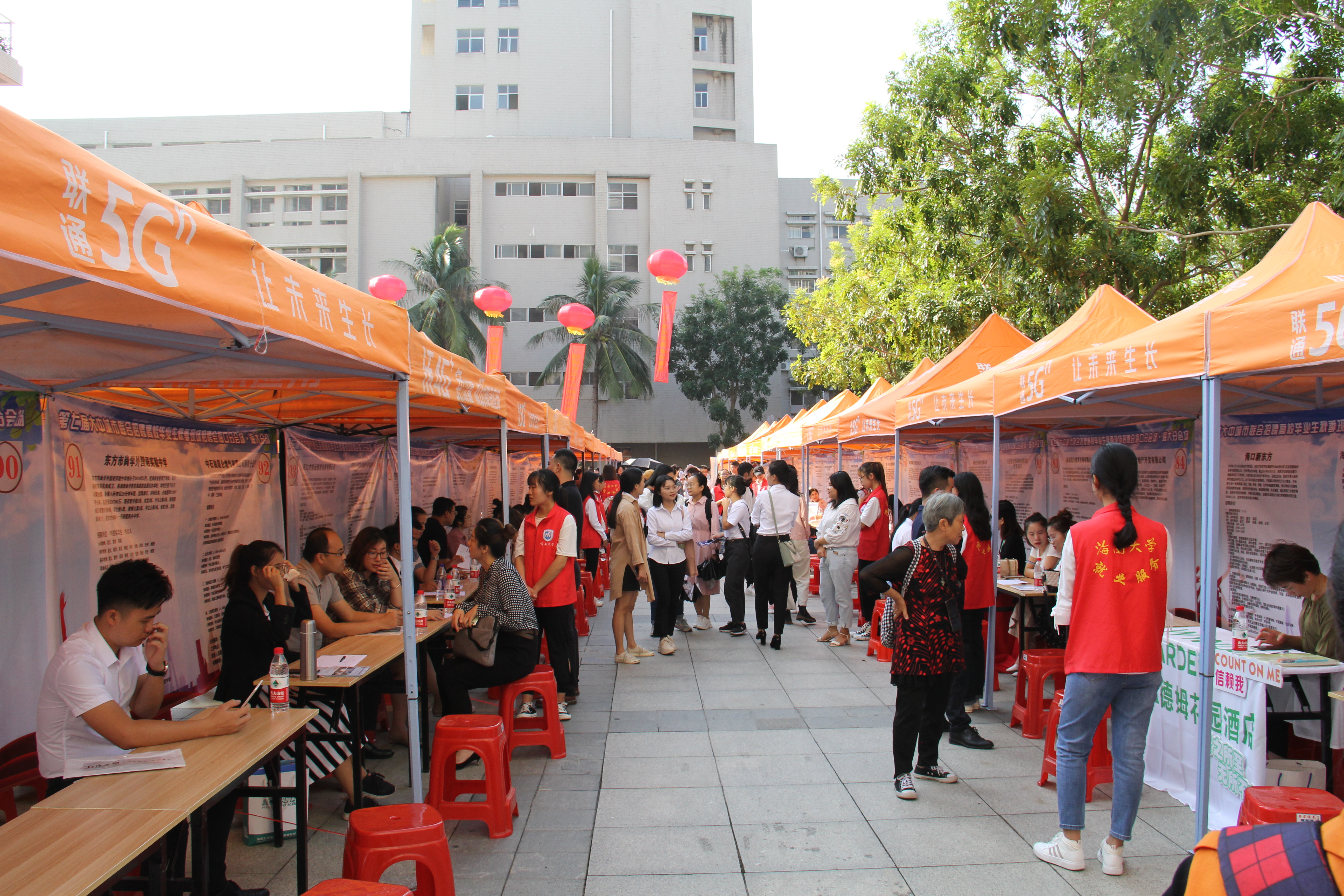 2019年11月16日上午,由海口市人才劳动力交流服务中心主办,海南天涯人力资源管理服务有限公司与hy3380cc海洋之神招生与就业处联合承办的第七届大中城市联合招聘高校毕业生秋季专场活动hy3380cc海洋之神分会场招聘会暨hy3380cc海洋之神2020届文科类公司毕业生专场联合招聘会于hy3380cc海洋之神社科群楼广场隆重举行。hy3380cc海洋之神招生与就业处副处长王珍、外国语公司党委书记黄丽芹、管理公司主管员工工作副处级辅导员符涛及各文科公司就业工作辅导员出席活动并作现场指导。活动共吸引200余家企业到场招聘。