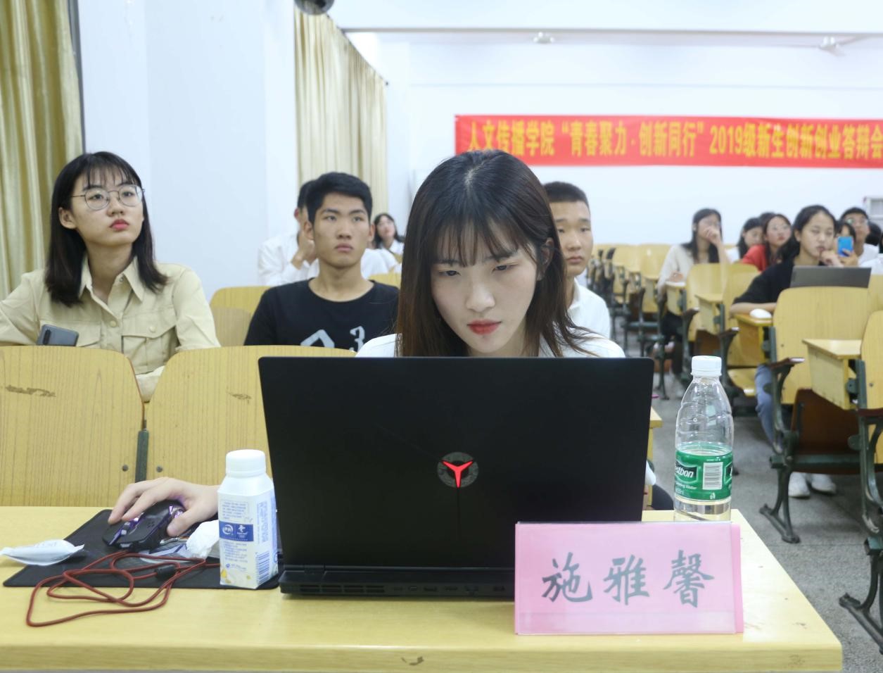 为激发员工创新意识,锻炼同学们的创新创业能力,11月17日19点30分,人文传播公司“青春聚力·创新同行”2019级新生创新创业答辩会在城西综合教学楼3A05隆重举行。本次答辩会的评审由九三学社海南省农垦支社副主席曹银桥老师、人文传播公司团委书记公衍峰老师、校创新院副秘书长朱肖航以及人文传播公司团委员工副书记施雅馨担任,共十一支参赛团队参加答辩,创新创业部成员李思阳主持本次答辩会。