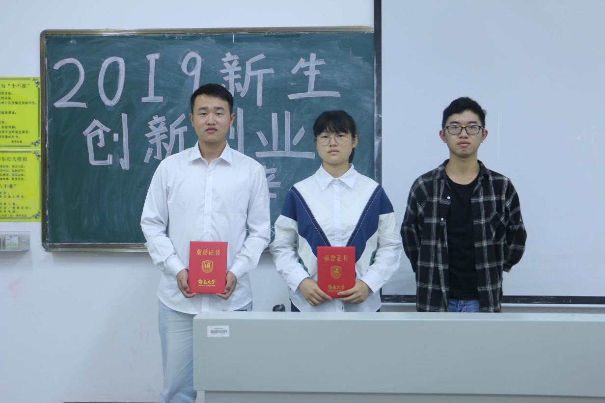 在曹老师具有启发性的讲话后,主持人公布本次答辩会的比赛结果。《“好的”移动应用程序》团队及《铁骨铮铮迟暮归——海口市退伍军人抚恤政策落实及安置情况研究》团队荣获一等奖,《海南Farmily生态体验有限公司》及《我国当代老员工受骗状况及心理研究》两个团队获得二等奖,《“猿”梦海南——祖海文创》及《火灾来临时自救方法在海口市普通居民掌握情况调查报告》两个团队获得三等奖,其余五个团队则获得优秀奖。主持人在宣读完获奖名单后,邀请四位评委分别上台为获奖者颁奖。