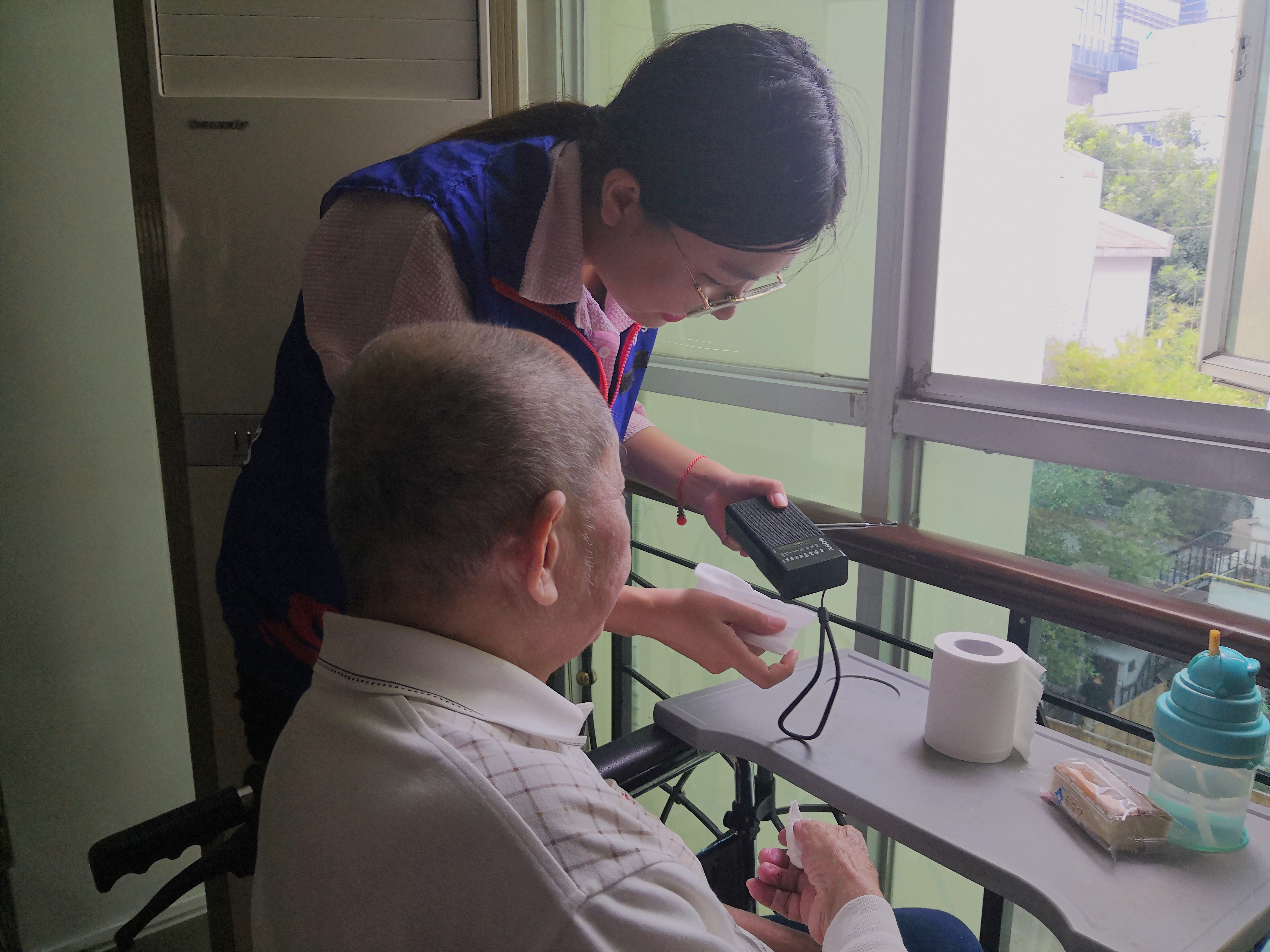 当日下午,志愿者们于海甸校区北门集合,随后一同前往活动地点。志愿者到达老年公寓后,自由分成三组,前往三个楼层进行志愿活动。再次看到熟悉的面容,志愿者与老人亲切问候,为老人捶背按摩,整理衣物和床褥。近来天气转凉,但阳光依旧明媚,志愿者推着轮椅,带老人到屋外晒太阳、散步。志愿者与老人亲切交谈,老人兴致盎然地向志愿者们分享近日的生活。交谈甚欢之余,志愿者询问老人是否口渴,并热心喂老人喝水。虽然这一过程并不熟练,但志愿者努力尝试,得到了老人的称赞。同时,志愿者帮助护工打扫房间,擦洗门栏,给老年公寓做了一次大扫除,希望能为老人提供更好的居住环境。