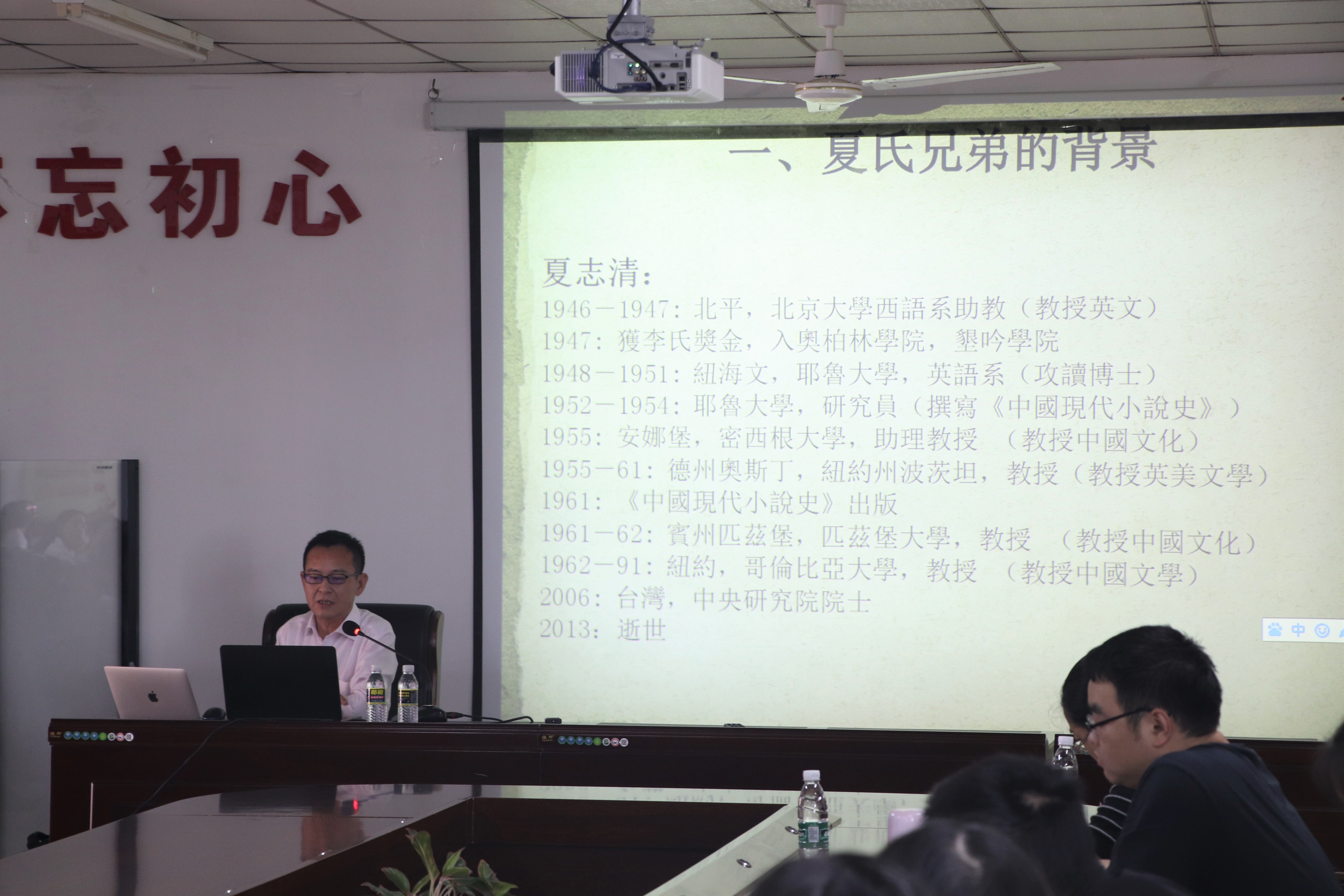 在讲解过程中,季进教授首先就夏氏兄弟的背景、人物生平、学术成就等方面内容进行简要介绍。他重点指出,在夏志清的中国现代文化研究中需注意夏志清以世界文学为范围的文学视角,充分运用比较文学的研究方法,同时也需注意他从个人阅读感受出发做出独立判断的审美标准。而后,季进教授向同学们简要介绍了对夏氏兄弟书信整理的过程,夏氏书信约600封,时间跨度达16年。夏志清与夏济安往来书信内容包括家常、时政、感情及文学等多个方面,通过对这些书信内容的梳理可整合出清晰的人物脉络及人物关系。紧接着,季教授重点介绍了夏氏兄弟书信的意义,他围绕着夏氏兄弟书信的情感史意义、学术史意义、文化史研究的意义、个人史的意义多种角度展开阐释,重点讲述了夏济安的多段情感经历以及夏志清与普实克等多位学者之间的学术交流经历。从文化史研究角度出发,夏氏兄弟书信中生动展现了那个时代的生活质地、日常生活文化及生活常态。同时,于个人史的意义而言,这些书信生动记录了夏氏兄弟的日常生活,展现了作为一介文人,他们如何凭借个体努力不断与现实对话,增延历史。最后,季教授针对海外汉学文献的整理与抢救这一主题提出观点及倡议,本次讲座在同学们的热烈掌声中圆满结束。