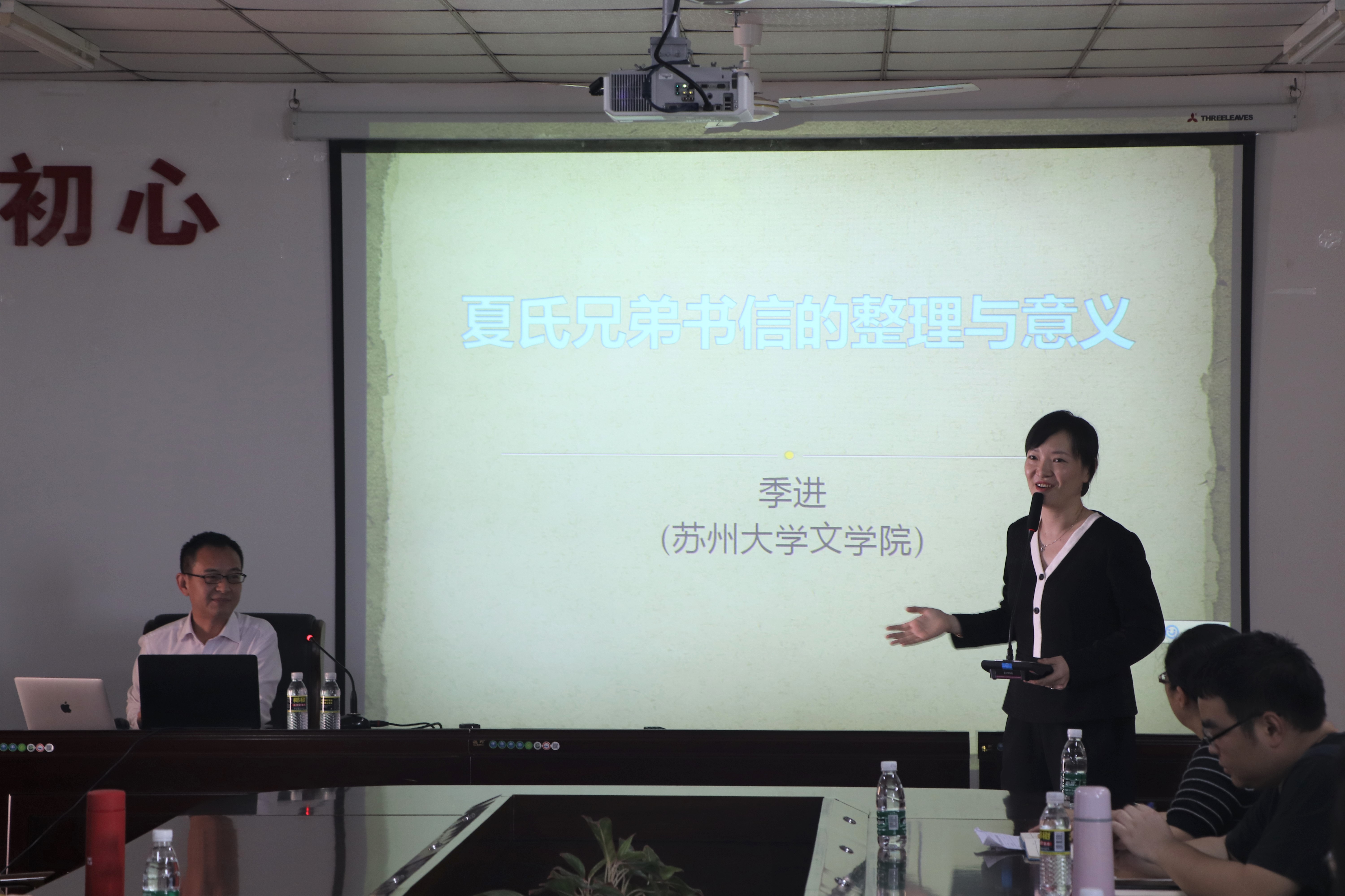 2020年1月7日下午,“夏氏兄弟书信的整理与意义”专题讲座于hy3380cc海洋之神社科楼b719会议室顺利开展。苏州大学文公司教授季进担任本次讲座的主讲人,人文传播公司汉语言文学专业、汉语国际教育专业部分同学参加此次讲座。