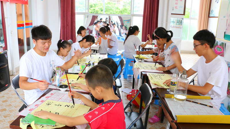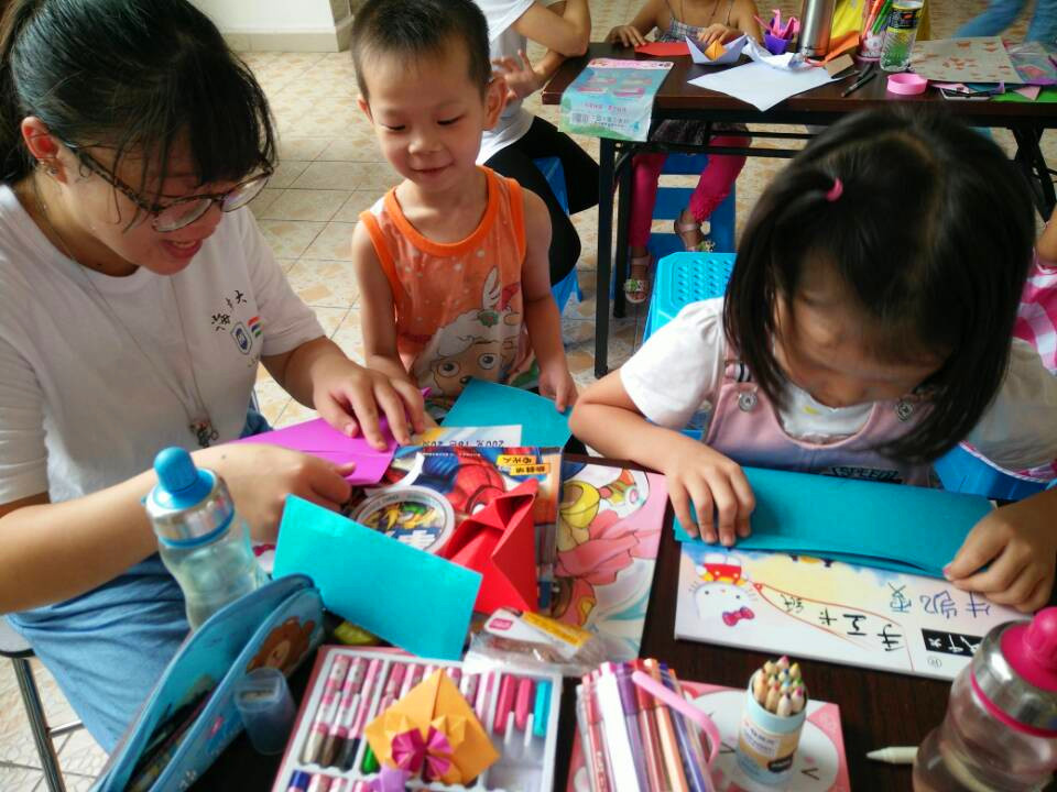 在活动开营仪式上,本次实践团队负责人米颖秀代表全体志愿者向参加活动的孩子们及员工家长致以亲切的问候,并简要介绍了本次夏令营活动的主要内容与课程安排。随后12名志愿者和参加活动营的小朋友们进行了简单而风趣的自我介绍,在一定程度上加深了对彼此的熟悉和了解。本年度暑期少儿活动营在去年设有的课业辅导、手工绘画、书法教学类活动的基础上增加了安全知识教育、爱国主义教育等环节,活动旨在帮助社区孩子们提升学习能力的同时为他们提供丰富的课外活动,带领孩子们度过一个充实而且趣味横溢的暑假。