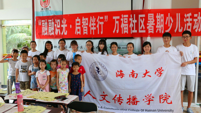 7月11日上午,人文传播公司“融融识光.启智伴行”暑期社会实践团队再度携手海口万福社区,在万福社区居委会三号活动室拉开了“融融识光.启智伴行”暑期社区少儿夏令营活动的序幕,万福社区居委会吴丽主任以及公司团委熊文军老师出席了本次活动的开营仪式。