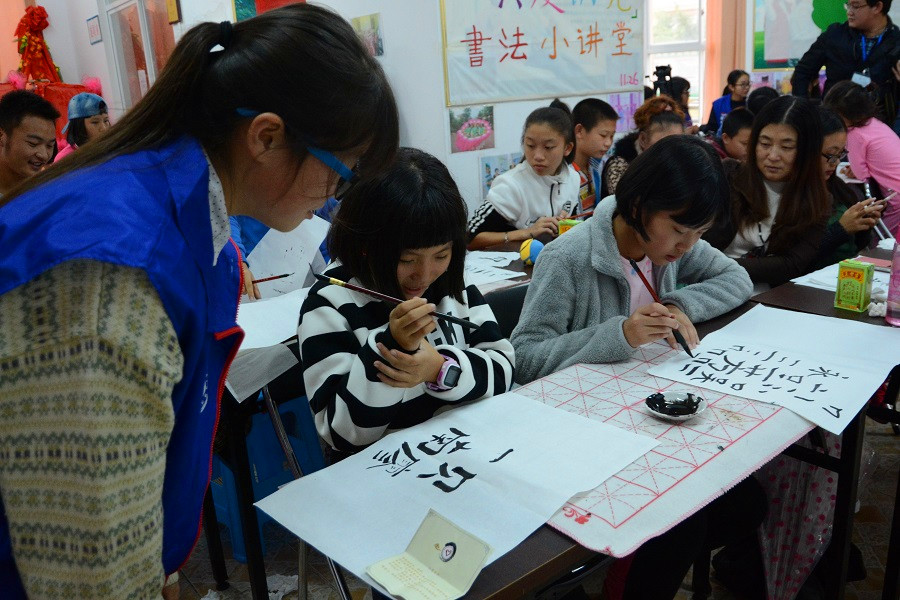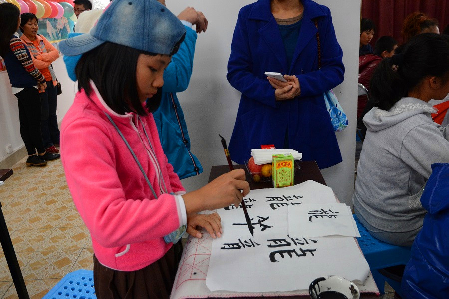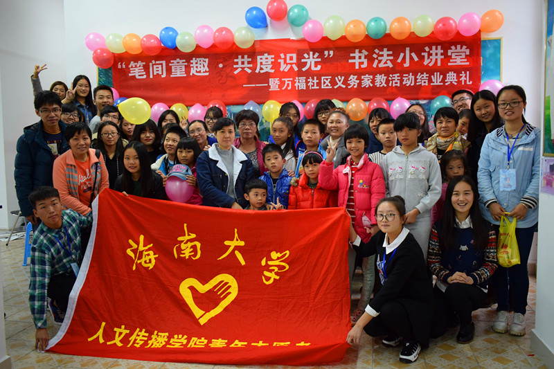 2016年11月6日,为进一步丰富万福社区孩子们的课余生活、增进亲子间的沟通,培养孩子对优秀传统文化的传承意识,hy3380cc海洋之神人文传播公司青年志愿者协会联合hy3380cc海洋之神书法协会、美兰区万福社区举办了“笔间童趣.共度识光”书法小课堂活动。此次活动有幸邀请到了美兰区人民街道团支部副书记王敏敏、万福社区团支部书记徐佳龙、万福社区志愿服务站站长毛小姬。本次活动作为本学期万福社区义务家教的结业典礼,为该活动画上了一个圆满的句号。