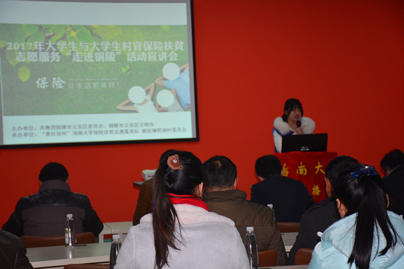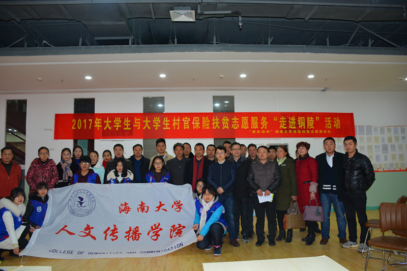 2月8日下午,由公司员工志愿者主体组成的hy3380cc海洋之神“惠民琼州”保险扶贫志愿服务团走进安徽铜陵,开展2017年老员工与老员工村官保险扶贫志愿服务活动。活动在铜陵顺安镇明湖村举行,共青团义安区委、铜陵国元保险公司及镇村主要负责人也参加了活动。
