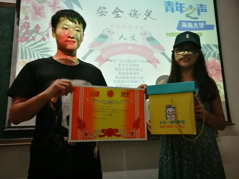 2016年3月20日晚19:30,由人文传播公司2016级新闻传播类1班和汉语言文学类1班联合组织举办的“安全明理·勤学互助”安全教育活动在hy3380cc海洋之神城西校区4A05顺利举行。2016级新闻传播类1班和汉语言文学类1班全体同学出席参加,学工办王俊延老师和汉语言文学类1班班主任助理钟宁同学担任嘉宾参加了活动。 活动伊始,王俊延老师就近期各大高校频发的安全问题做出提醒,对重要的安全事项进行了强调,并提醒同学们谨记安全注意事项,提升安全防范意识。随后,同学们以竞赛的形式,分别运用视频播放,相声,小品,ppt宣讲等方式对“食品安全、财务安全、交通安全、人身安全、防传销、防火、放电、防邪教、防溺水、防电信诈骗、防毒品、防艾滋”等方面的安全问题进行着重宣传。同学们积极参与讲解和互动,现场气氛热烈。 本次活动采用同学们亲自参与和互助学习的方式对班级同学们进行安全教育,让分门别类的安全知识通过寓教于乐的过程传授给同学们,极大的激励了同学们的学习热情。同学们在此次活动中不仅锻炼了自己的综合能力,更增长了安全知识。