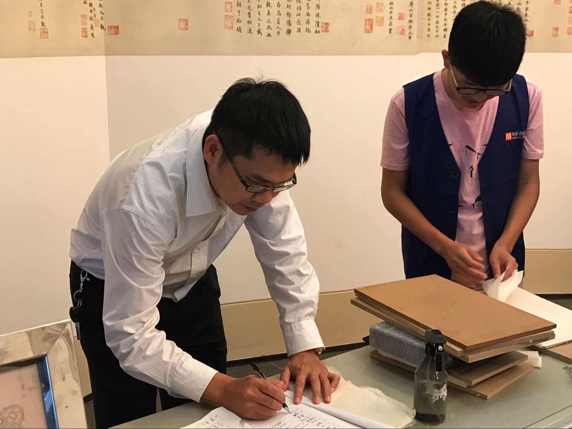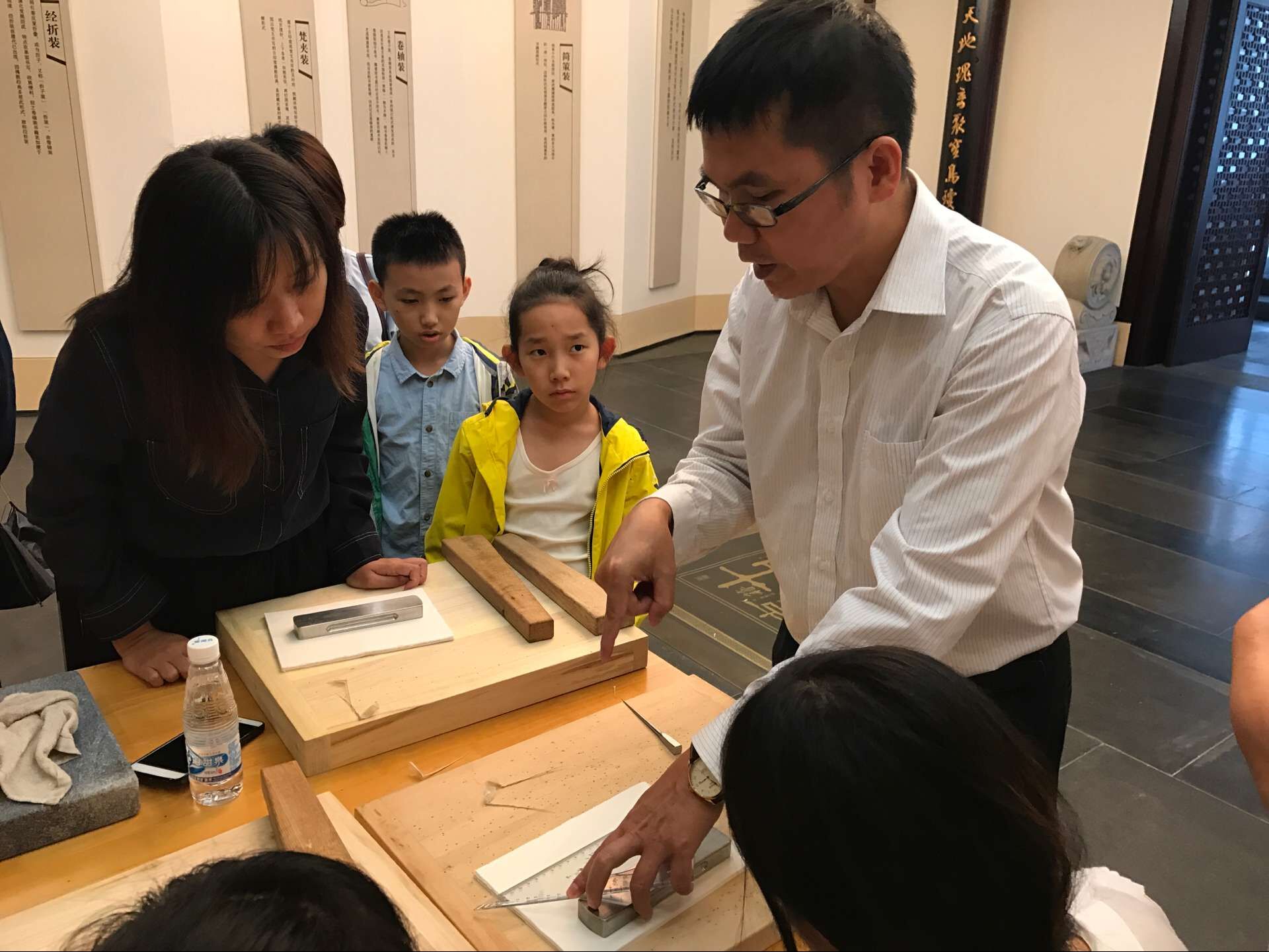 志愿者在图书馆管理员的安排下分为三组,第一组为古籍修复组,志愿者教授市民古籍线装书制作,制作流程分为五步:登记,领取材料——裁纸折叶——订纸捻,裁边——上皮,打眼——订线,贴书签。志愿者在制作过程中时刻提醒制作者们小心裁刀、针锥、锤子等尖锐器材。第二组为讲解组,志愿者们从知识性、趣味性、观赏性的角度,讲解从四库“经”、“史”、“子”、“集”古籍中精心挑选出的26部影印古籍26组图片并耐心解答市民提出的问题。第三组为书法组,志愿者们引导对古文感兴趣的市民进行古文摘抄。志愿者们站在市民身边为他们砚墨。在整个志愿服务过程中每个志愿者都尽心尽力,没有丝毫懈怠厌倦的情绪,全心全意地尽自己的责任。他们的热心、耐心、细心、贴心赢得了图书馆工作人员和众多市民的一致赞扬。