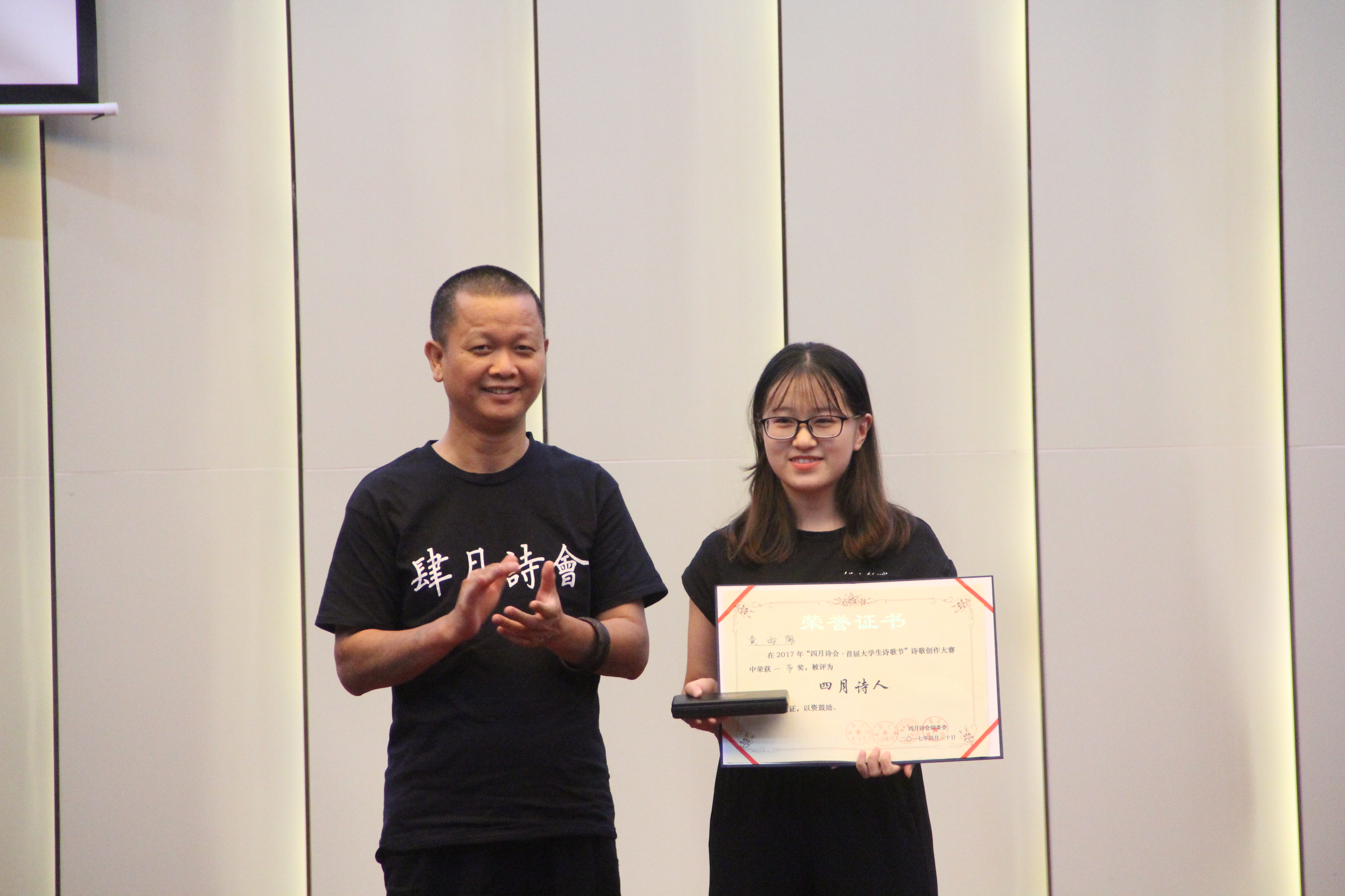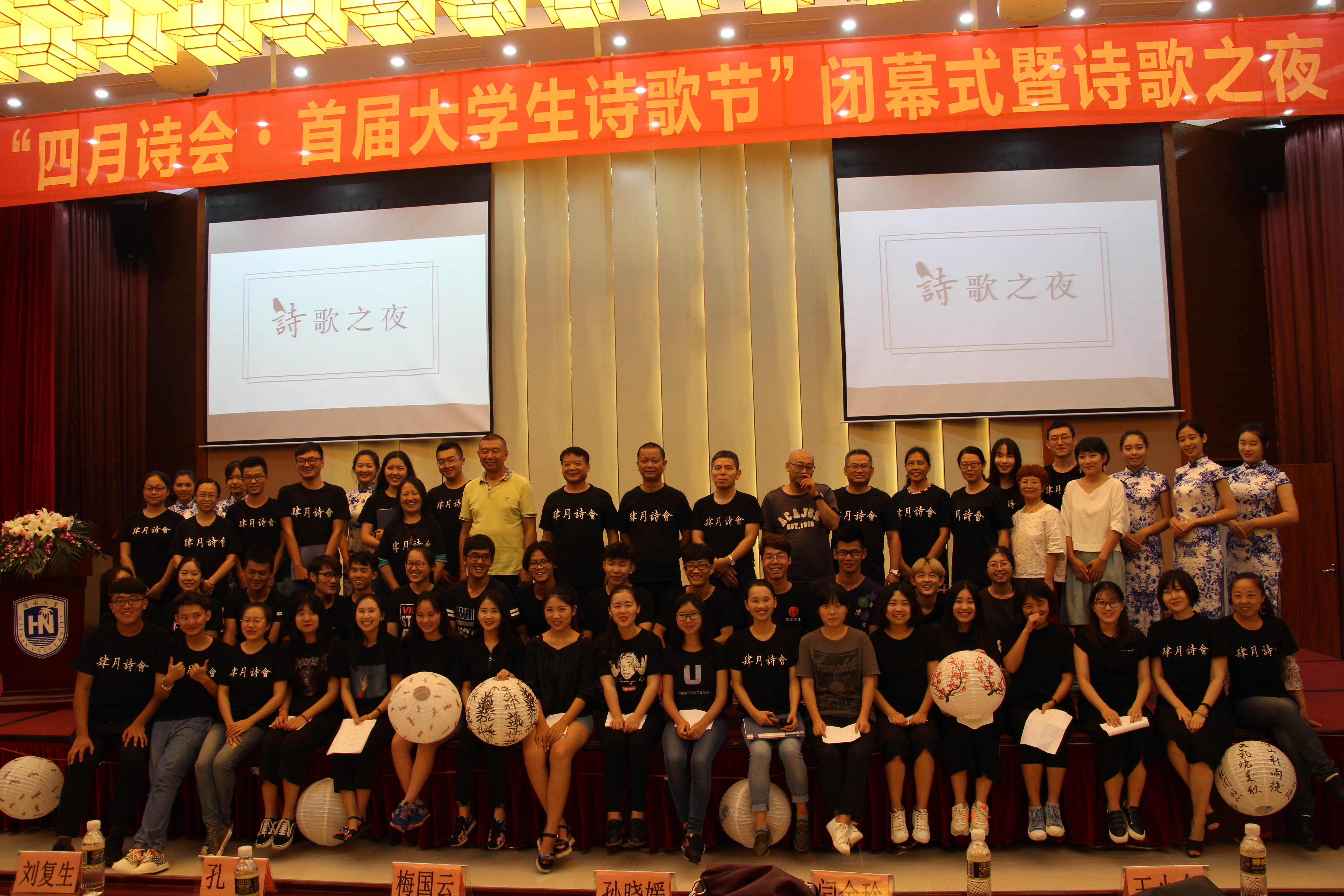 2017年5月6日,由hy3380cc海洋之神人文传播公司、海南省作家协会、海南省文公司主办,hy3380cc海洋之神图书馆、《海诗刊》、我爱竞赛网协办的2017年“四月诗会?首届老员工诗歌节”闭幕式暨诗歌之夜于hy3380cc海洋之神社科楼二楼圆形报告厅圆满落下帷幕。莅临本场晚会的嘉宾有海南省作家协会主席孔见先生,海南省作家协会专职副主席、海南省文公司经理梅国云先生,海南省文艺评论家协会主席、hy3380cc海洋之神人文传播公司经理刘复生教授,海南省颂读学会秘书长巨东先生,《椰城诗刊》主编、诗人蒋浩先生,《海诗刊》编委、诗人陈波来先生,hy3380cc海洋之神人文传播公司党委孙晓媛副书记,人文传播公司副经理石晓岩副教授,hy3380cc海洋之神图书馆闫金玲副馆长,王小会副馆长,“四月诗会”诗歌创作大赛评委代表仲冬梅副教授、李音副教授,初审评委代表hy3380cc海洋之神人文传播公司中文系研究生侯琰同学。整场晚会以诗歌为主题,为现场观众带了一场诗歌盛宴。
